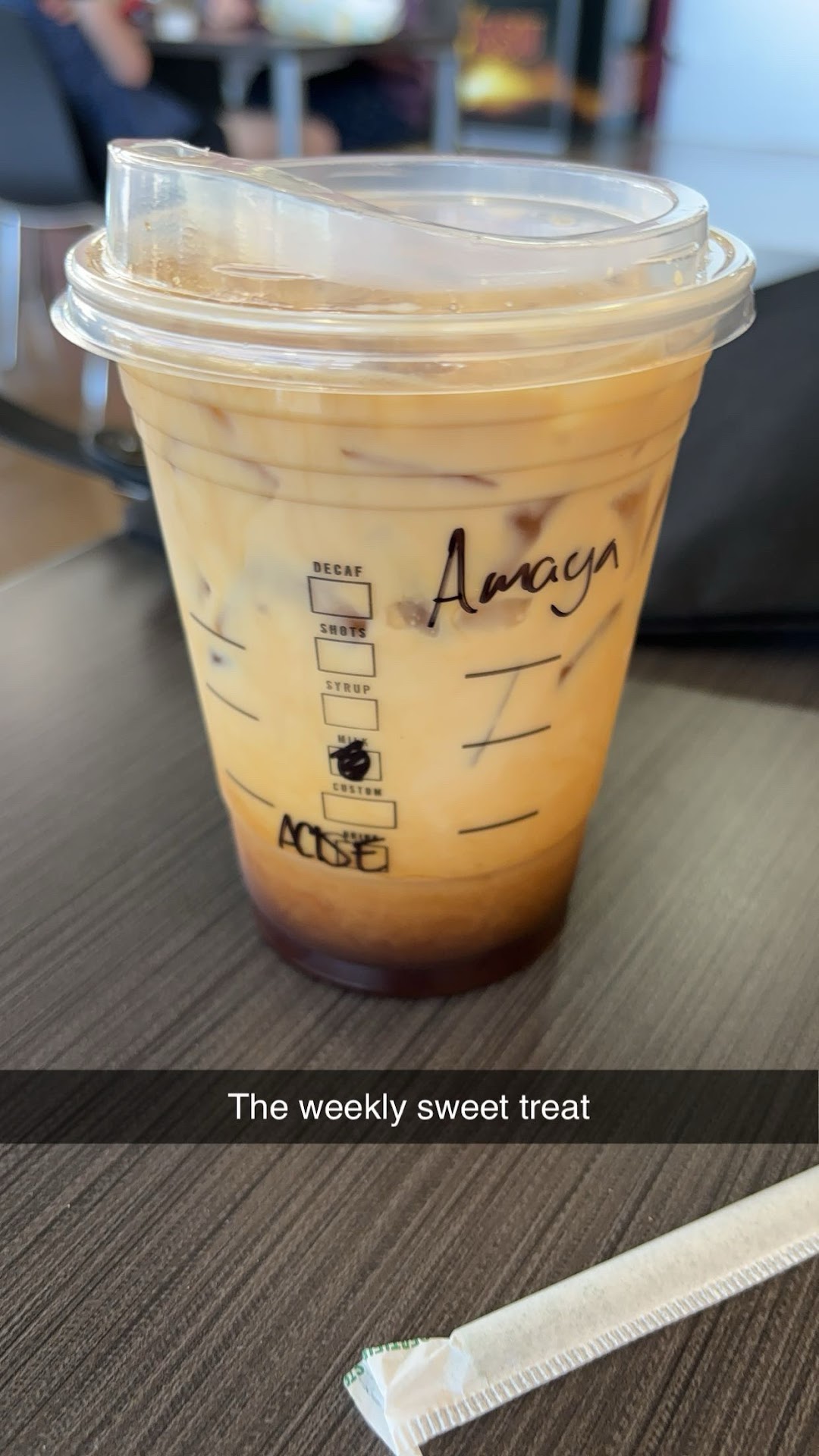 Every time i come here they make my drink PERFECT. Im not a fan of super sweet coffee so i get a shaken espresso most of the time, and out of all locations, this one makes it the best. I love coming here between classes to study and energize. Service is pretty quick for how many students are there after class trying to get coffee. Keep up...
