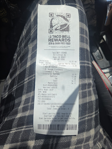 The Tuesday $1 deal is something I look forward to because I get to try new things without paying more! I think itās a great way to see what Iāll like in the future! However, this last time I ordered on the app ,with the code and everything, it originally showed up as costing $1 on my card, but by the time I got home, it charged me the full amount. I hope this isnāt a new trick to get all those customers who use the $1 deal to end up paying more. I contacted Taco Bell about it. If they make this small thing right, I have a much better review to write! Taco Bell is my āgo toā place. Food is usually good, but they seem to mess up my order just a bit sometimes. I work long hours and this is a place I can afford when I donāt have time to make something. I definitely noticed the breakfast burritos got smaller and more expensive, which I wasnāt happy about, but then I did try it at a different location and it was the right size! So I guess Iām just unlucky with which location is close...
