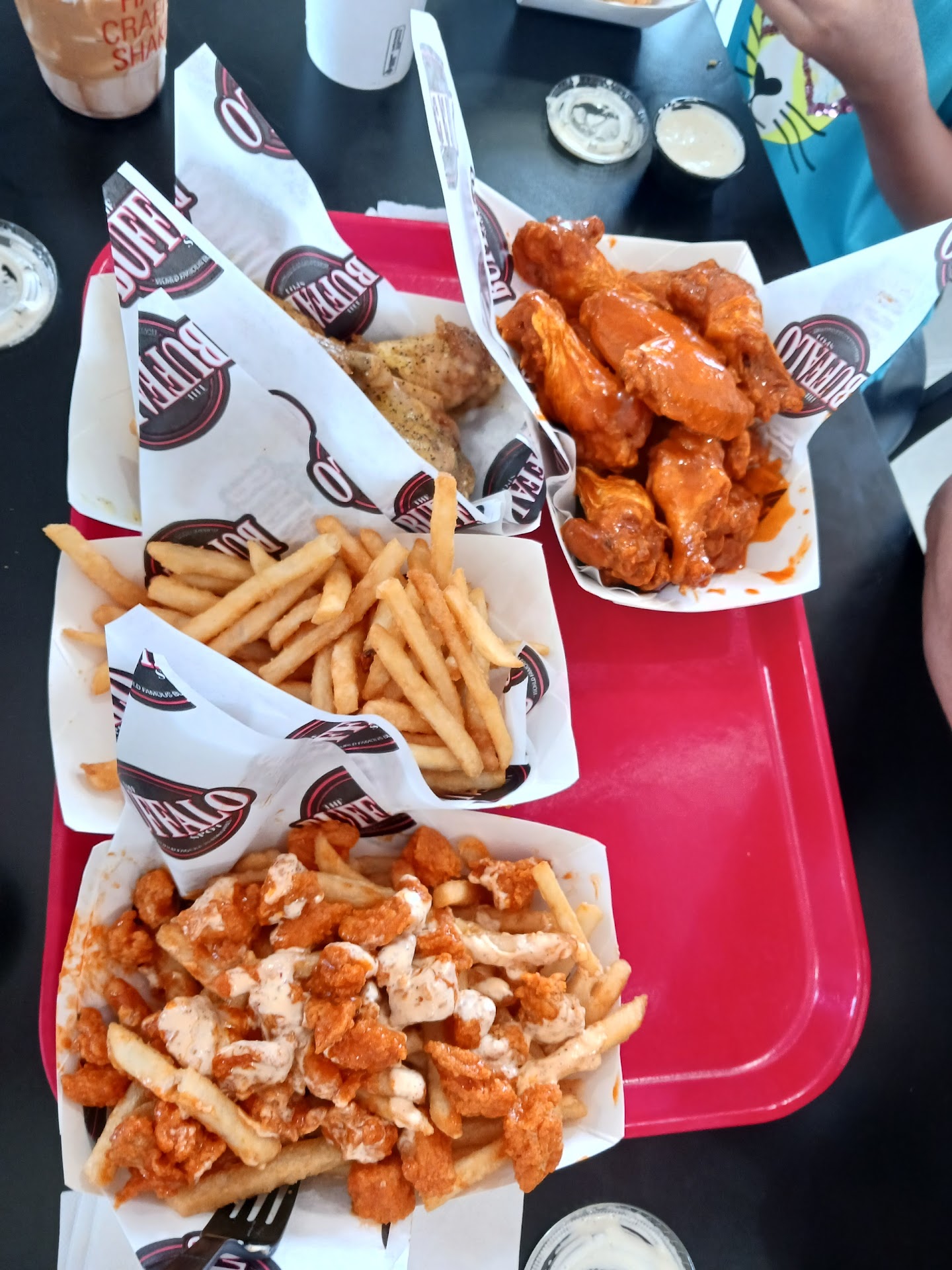 We ended up ordering two large buffalo friesâone with pineapple jalapeĂąo and one with mango habanero. Both were packed with flavor, and we kicked them up a notch by adding ranch on top. Pro tip: definitely ask for extra sauce because it makes them even better! The fries were loaded, messy in the best way possible, and absolutely delicious.