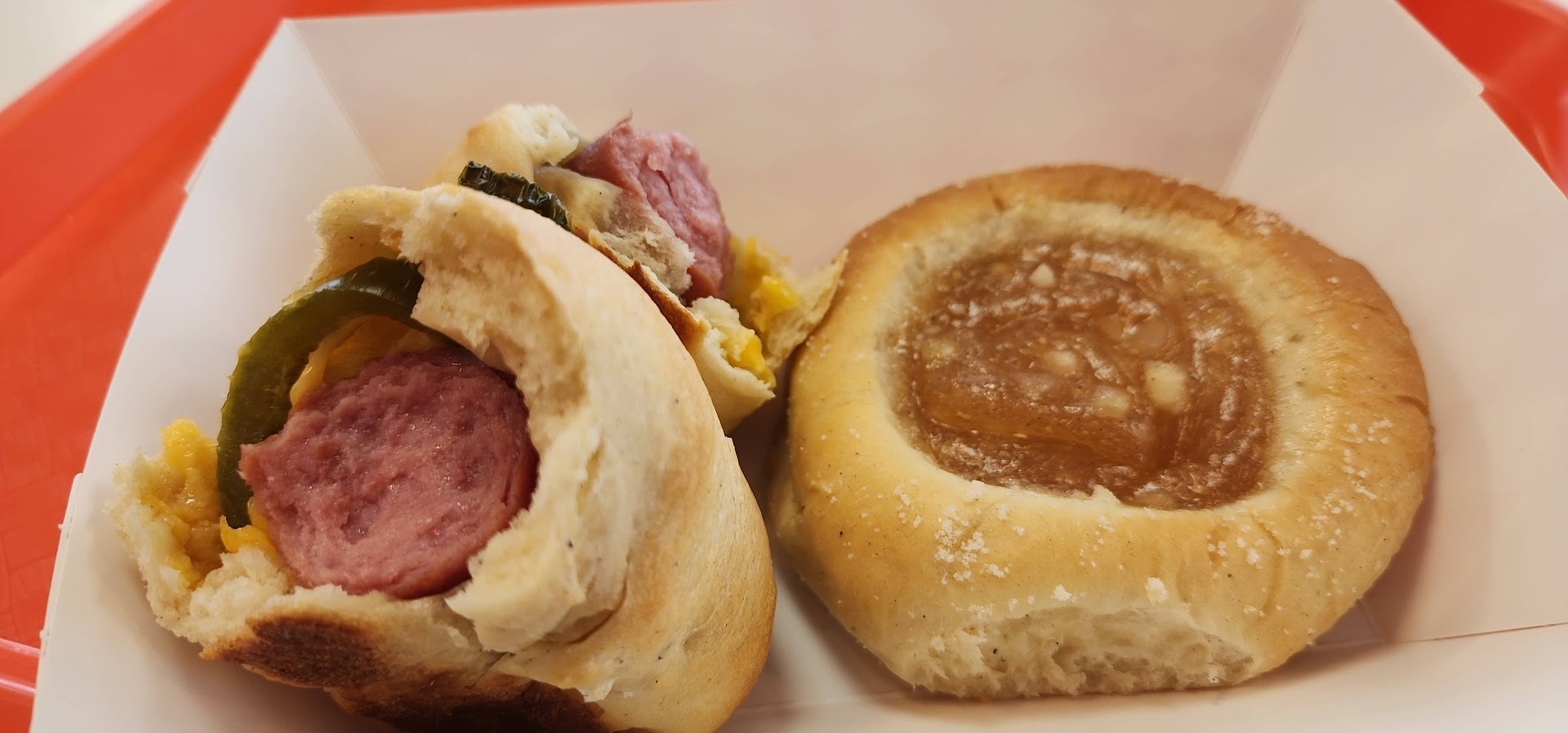 Read moreI came in at about 2:25-2:30pm nearing their closing time. I ordered a Number 2 Combo, it came with a drink, a savory item and a sweet item. For the savory item I got this sausage jalapeno doughball with cheese inside, soft and delicious. For the sweet item, I got a apple pie type thing, it was soft and delicious. The sweet item had the consistency of jelly that is put inside of a donut, I saw pieces of apple in there, tasted great.