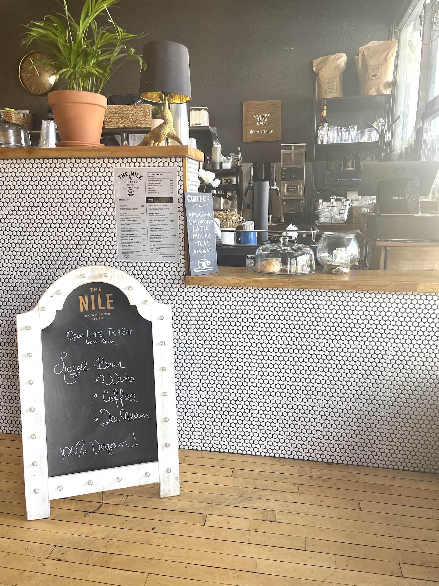The Nile Coffee Shop is so vegan they don't even have knives. I don't know how they cut their vegetables and bagels behind the counter, but in order to eat an avocado bagel or toast, I like to cut it into bite size pieces... not just manhandle it and shove it into my face. One other nitpicky thing is that they are so completely vegan that they only have nut milks, which as most of you know are absolutely horrible for the environment which you think they would be wanting to save. Oh the irony.