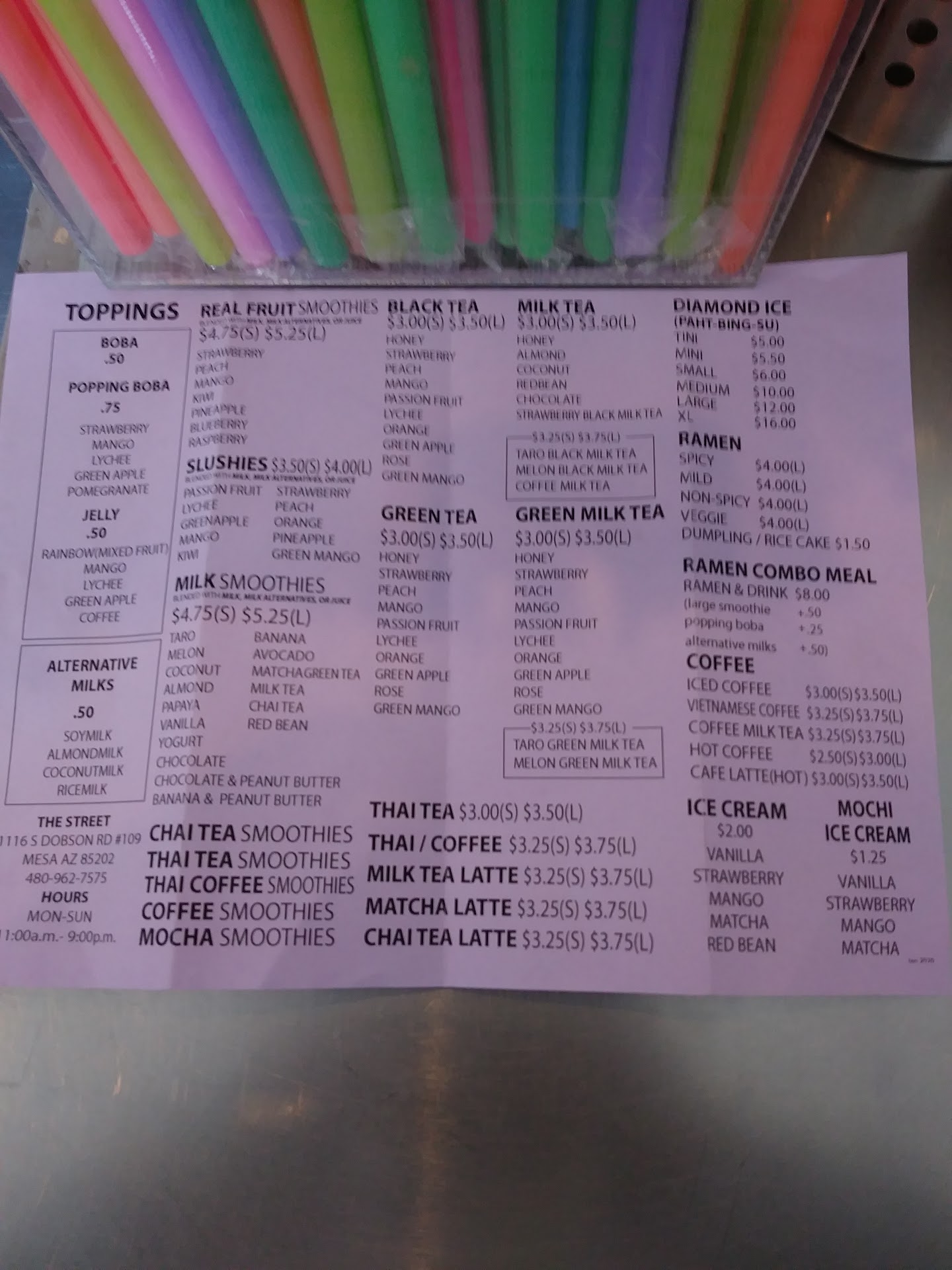 Great smoothies, Great Boba and really good Diamond[Shaved] Ice bowl. Drinks as low as $4 Tea to $6 Smoothies