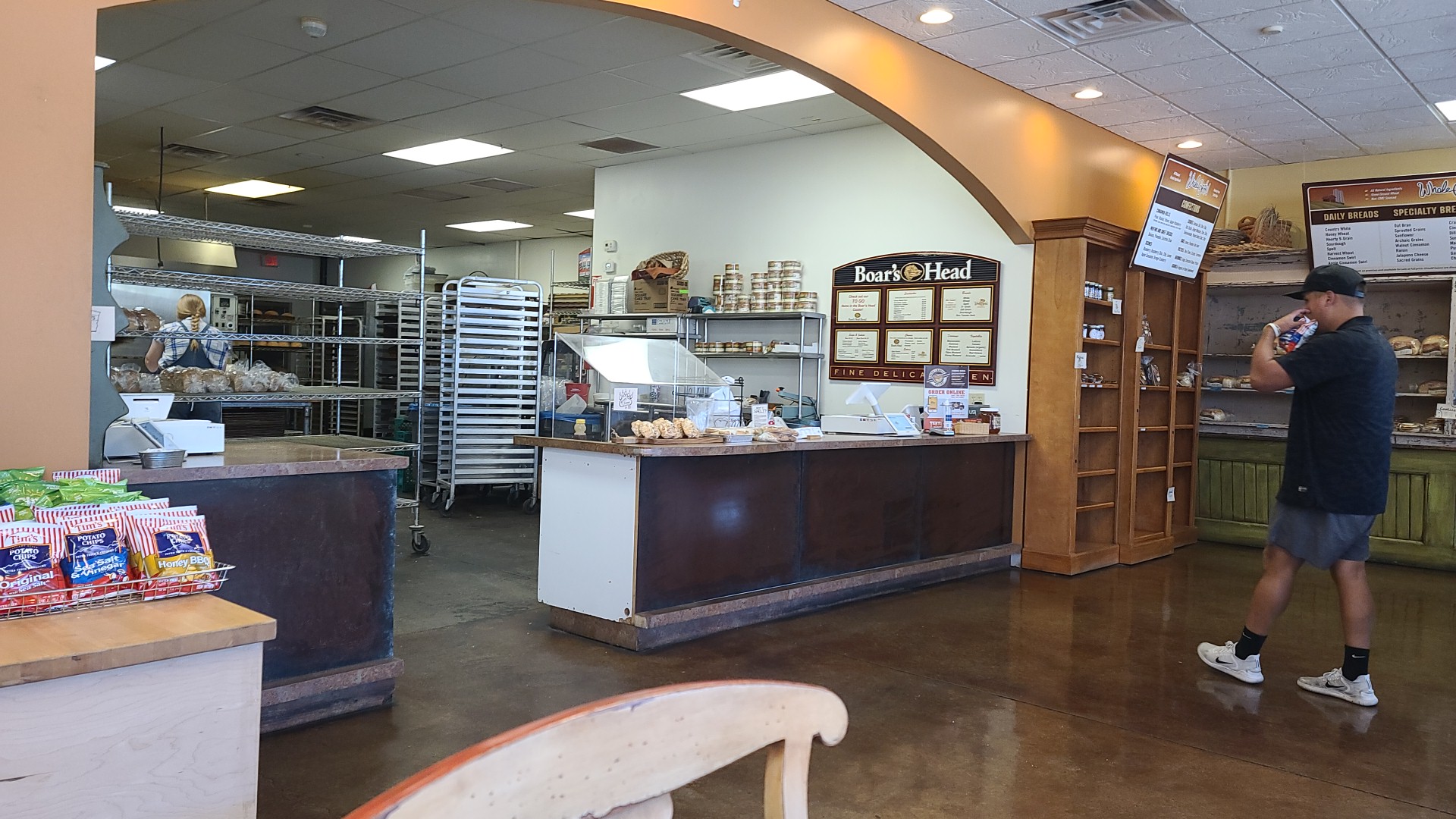 When I went today (May ā24) I asked for a loaf of sourdough bread because there were none on the shelf. The lady at the register was kind and said they had some they could slice up for me! All was great but before slicing I paid cash which she handled and gave me my change, she moved her hair out of her face, she answered the phone and walked outside pushing the door open to read the sandwich specials sign for the caller on the phone. All of this was done in the exact same gloves she grabbed my bread off the rack with, sliced it and bagged it! No change of gloves, sanitizer or anything!!!! My bread went straight to the trash...