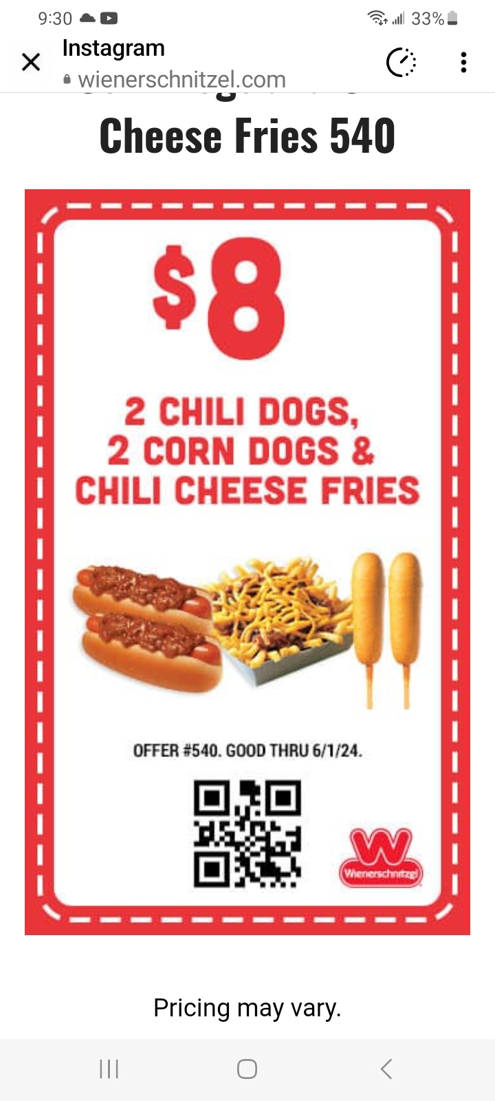 Ā Ā Ā Read moreThis promotional cotton candy dipped ice cream cone... UNBELIEVABLE!!!! I'M SERIOUS! How is this not a regular "dip" at DQ or anywhere that serves Anthony dipped! I'm a 43 year old woman. For me to take the time to do a review on a food item itself, period (as opposed to what I normally review, exceptional customer service), LET ALONE A FREAKING DIPPED ICE CREAM CONE, which I NEVER BUY ICE CREAM CONES ANYWHERE! Especially dipped ones because, besides Dilly Bars, who orders those, unless they're under 8yrs old? š Must mean the product itself is amazing! Which THIS IS!!! So not only does this specific wienerschnitzel have the best customer service regardless of who's working, my go to order of jalapeno poppers and mini corn dog bites are always KILLER! On top of the fact that now... They've got the WILDLY UNMATCHED COTTON CANDY DIPPED ICE CREAM CONE! So in the future, don't do ME a favor... Do YOURSELF A FAVOR! BUY YOURSELF AT LEAST 3, and run 2 of them into your freezer and then savor the $HIT out of your 3rd cotton candy dipped cone! You WILL NOT...