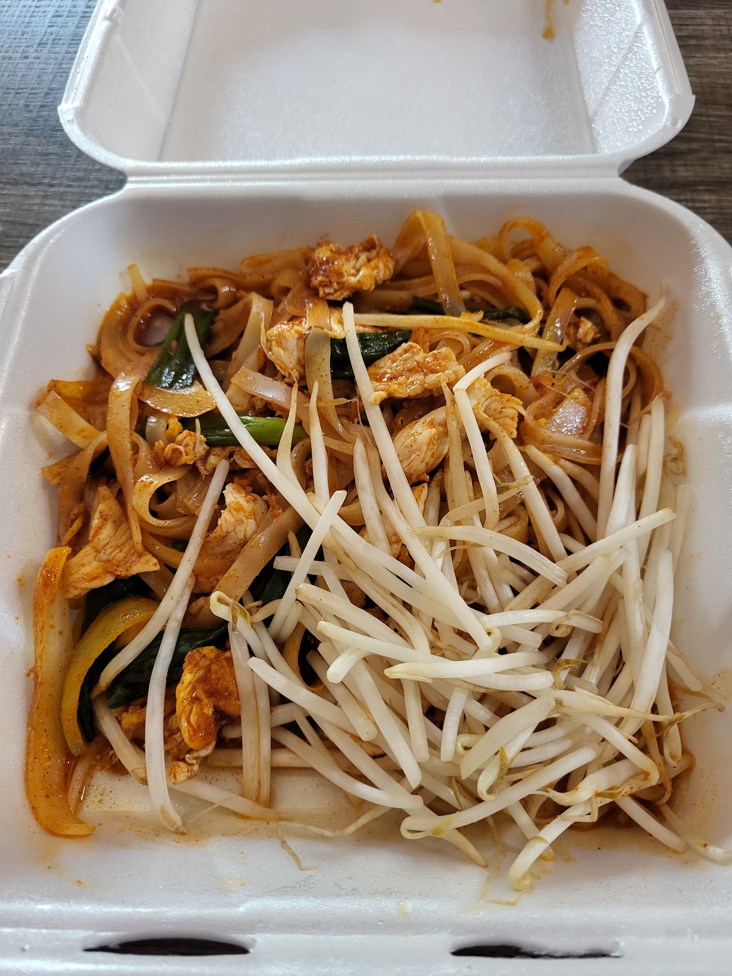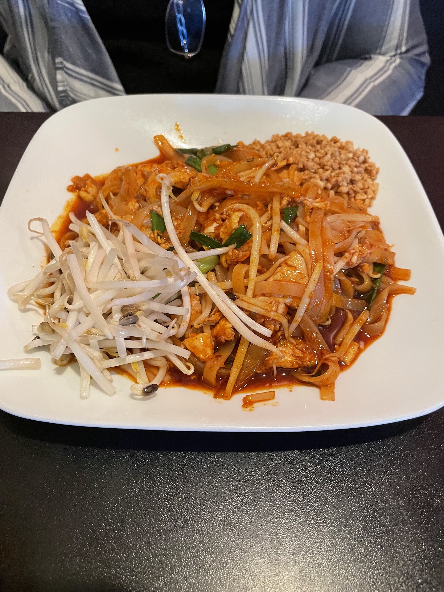 Read moreOur experience of this restaurant differs from most other reviews. My spouse and I had a spring roll, Pad Thai, and Red Chicken Curry. The entire meal was over-priced and under flavored. They cut a single spring roll sushi-style and charge the same price where other places serve two rolls. The Pad Thai was, at best, ordinary. The Red Curry was thin with very little coconut milk, a tiny amount of chicken (I estimate 1-2 ounces), and the only heat was from the cili oil. The red and green bell peppers and bamboo shoots added very little flavor. I had the impression that the major ingredient was either broth or water. Each entree cost $13.50. The meal was way over-priced for what little we received in our bowl and on our plates. Fortunately, we are traveling through and will not be tempted to eat here again. We know where much better food awaits us. I encourage anyone considering eating here to resist the temptation. You will be...