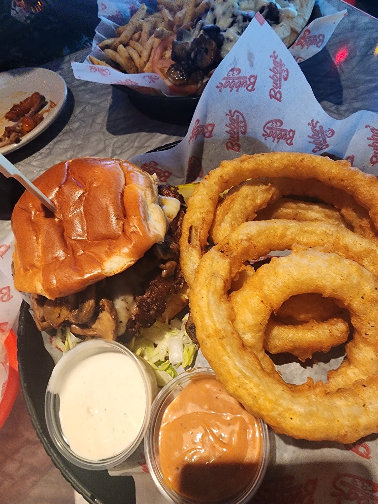 Read moreBubba's 33 is a regular stop for us and we normally have phenomenal service, great food and a great time. Last night I went and ordered the same thing I always do and asked for no onion and jalapeno mix that comes on the burger. I was told by the server that that means I would " just want a plain burger with the jalapeno cheese patty on it". I asked if I could still have the 2 sauces that come on it. I was told that was not possible. I politely just said that's odd we do it all the time here. To which the server snapped back with "i've been here 7 years SWEETHEART (all sarcasm laid on thick) and it's not possible". Taken aback I said do not call me sweetheart. I am not here to argue with you I just stated it's been ok before to leave this item off and still receive the other items that come on this spicy habanero burger. I asked my husband to just go ahead and order anything for me at this point as I really cannot deal with this. The server doubled down on ignorant behavior and treated us like trash the rest of the visit. He never apologized for this either. He is the server with the very long braids and a nose ring of gold i do not know his name. I ended up having to get the young lady manager that was on duty who was walking by after another table's check was messed up by the same server to walk to help us get my burger. Not only was it true that the sauce could be placed on the side apparently their wings also offer this sauce I was asking about that comes on the burger. Could have had an easy solution but instead the server decided to berate and argue with a customer. Unnecessary behavior. 7 years as a server would tell me that actions like this would not happen as you are "experienced" at this restaurant. It was very insulting. The manager gave us a 1 free entree coupon for next time and promised to talk to the server but I want someone to know that this behavior from your staff cannot continue. Oh and when my burger came out it had multiple other issues wrong with it and still had to be redone.