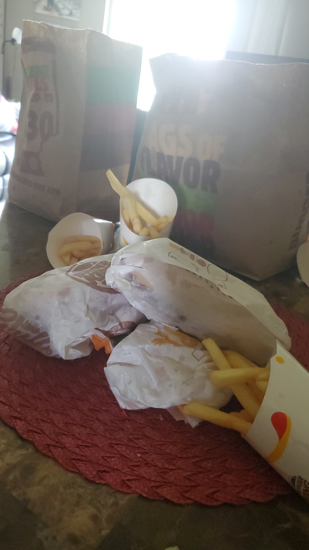 Read moreToday was a great day to sit and have supper. My niece wanted Burger King (BK). I told her great choice! I have in my pocket a few coupons and was ready to use them. We placed our order and OMG, the smells coming from the kitchen were crazy. I knew our food was going to be gooooood! My coupon was for a two person meal. BK sandwiches with fries and drinks. My niece is 7 years old, she ate her fries and mine too. She had the whopper with cheese sandwich but didn't tell the cashier no veggies. Our food was HOT!! Loved it! A few minutes before we received our food, a storm came through knocked out the electricity for a brief moment. The manager on duty was awesome! She took extra care of me and my niece. We felt safe and comfortable in her restaurant. We will be visiting again. To the crew, thank you for the kindness, professionalism, and the love, you showed...