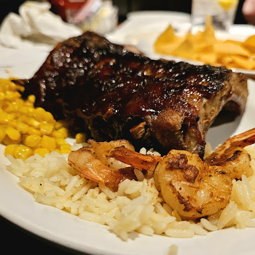 Read moreFirst time eating at this chain while in the Dallas area for the eclipse. Quite a long line of customers waiting when we arrived at 6pm on Sunday, but we had gone online and placed ourselves on the wait list. Waited 5 minutes to be seated. Large restaurant with paddle style ceiling fans and a big aquarium. Lots of staff on duty and they were all working hard. Our waiter was Jacob. Friendly, efficient and fast. 2 complimentary butter croissants arrive at your table within the minutes of you being seated. We ordered the queso dip and homemade tortilla chips. A large basket of hot chips arrived with a dish of piping hot queso and another dish of salsa. I ordered the half rack of ribs with grilled shrimp, and roasted corn. I paid 99 cents to upgrade my other side dish to a dinner salad. Dan ordered a small sirloin steak (6oz) with coleslaw and a dinner salad. The arrival of the apperizers and the main meal was well paced. The side salads were huge, like an entree salad, and were excellent. Crisp cold lettuce with tomatoes, cheese, shaved carrots and croutons. I felt full after eating the appetizer and salad. The entrees were equally impressive. The ribs were very meaty and the bbq sauce was perfect, not too tangy and not too sweet. The 4 grilled shrimp were cooked perfectly and had good seasoning. The corn was buttery and had good seasoning as well. Dan's steak was cooked a perfect medium with a pink center. He was happy he ordered the 6oz steak because there was so much food. The coleslaw was creamy, cold and sweet (perfect, because i hate vinegar based sour coleslaw). We were too full to consider dessert, even after we saw a giant slab of chocolate cake go by with vanilla ice cream. All the employees were friendly and attentive, even though it was extremely busy. This is a very family friendly restaurant as well, with quite a few large tables. The table next to us had 14 people, and i saw that they were getting excellent service. Overall, highly recommended for quality of food, portion size, and very economical. Our meal was $44 before adding the tip. This is unheard of...