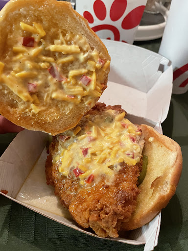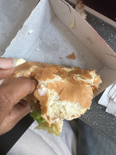Read moreStopped here with the kids while at the mall. Bread is definitely not normal bread. Every time we picked it up there was mayo and grease all over our ringers bc the bread kept breaking apart. My 3 yr old had bread crumbs pretty much and kept trying to put his sandwich back together which he gets really stressed out about 🫣. Were used to eating chick fil a in the car with no issues. They don’t have the table plastic covers for kids like most locations so had to keep asking for napkins so I could try to build somewhere clean for them to lay their food while eating. Tables were dirty, and spicy chicken wasn’t spicy...
