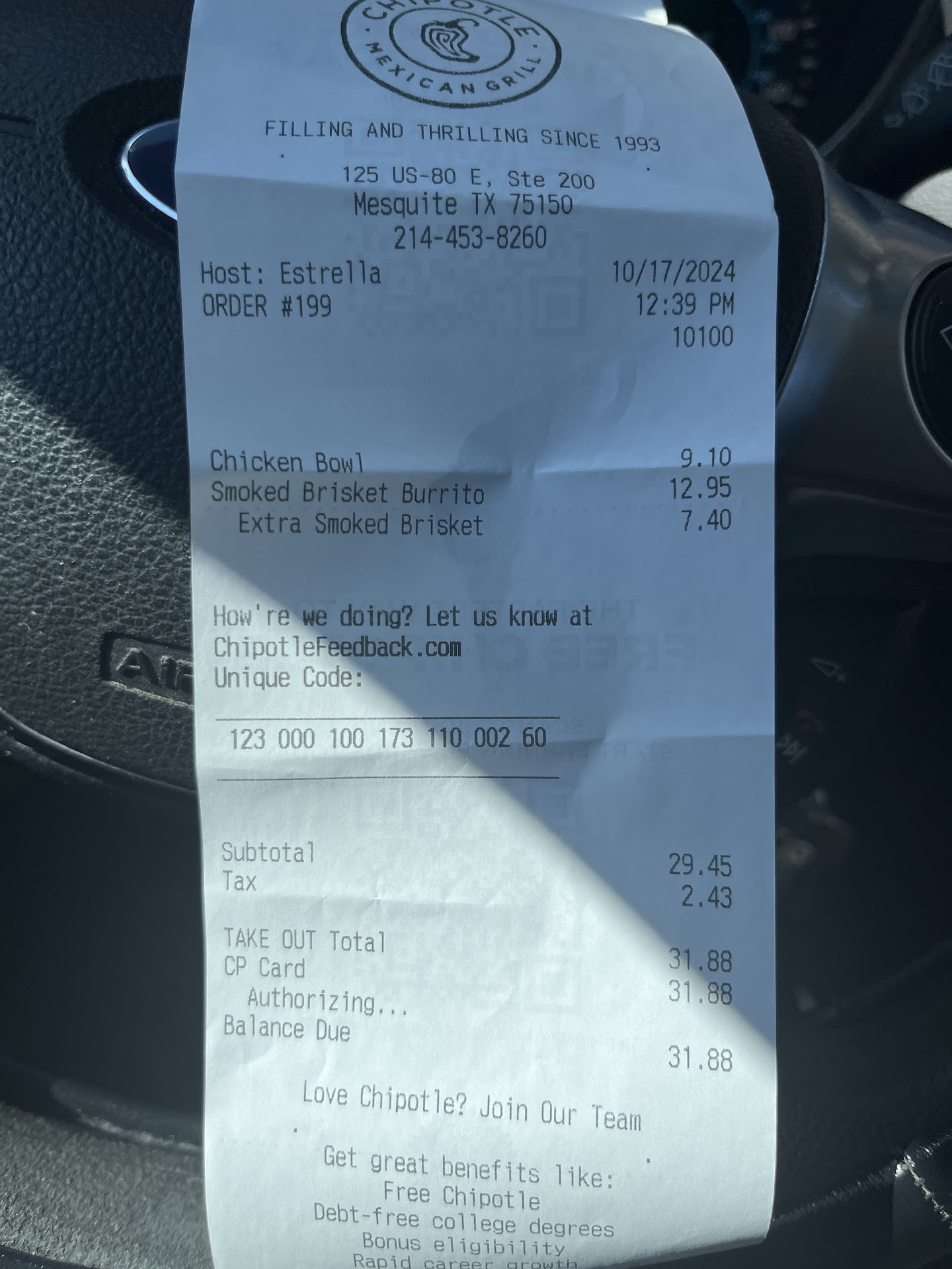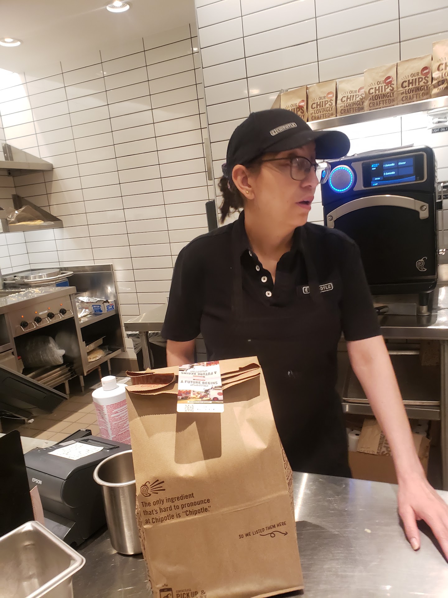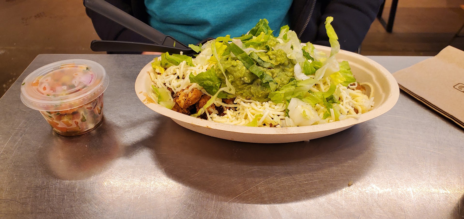 I visit this location once a week after I get done studying at Starbucks for the evening. I don't know why I continuously bother to enter those doors. This evening I walk in to see that I will only be the 4th person in line. 30 minutes later, I walk out with my dinner. This location has rocks for brains. I get to the front of the line and one of the employees is cleaning the tortilla heater. The whole time she is moving so slowly, turning around to chat with a coworker and then she had to line the heater with aluminum foil. I am watching as another employee stands there trying to wait for her to finish this task so he can heat tortillas for online orders. This location always fills several online orders between each physically present customer, making the line 10 times longer. Instead of the employee asking if I would like something that requires a tortilla vs. a bowl, he continued to stand at the heater to wait for the lady to figure out how to secure aluminum foil to the heater. To work more efficiently, the employees need to communicate with one another. The young man frantically trying to warm tortillas should have just checked in on me and asked if I was ordering a bowl or a taco/burrito. I was there to order a bowl. He could have then skipped the online order for another minute or two while filling my order then move back to the tortilla heater. They also need to keep the online orders over to the other side of the kitchen where there is an assembly line specifically made for that purpose. But instead they shut down that station every evening around 7pm when people are flooding into this place to get their dinner. After my 30 minute wait in a line of 4 people with at least 5 items for mobile orders being filled between each person, the physical line had grown to 20 people. I felt so bad for them. I knew they last person in that line would be waiting an hour before they got their food.