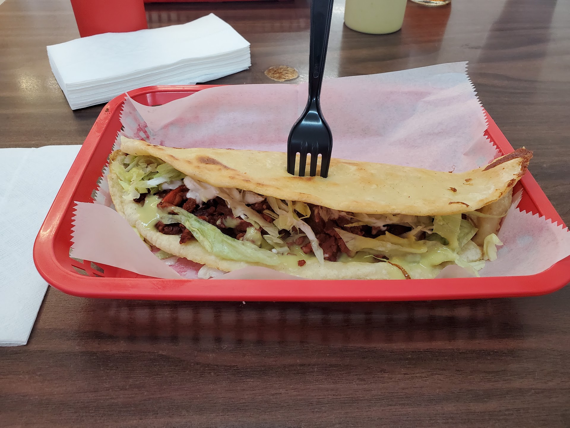 The food was fantastic. Been going here for years and it's been consistently delicious. Today I had a torta de fajita de res (basically a staple Mexican sandwich, prepared the Mexican way) and from someone who's had many, they serve a fantastic one. Aside from that, their tacos and gorditas have also been consistently great. Not to mention there is a Frutería right next door. I recommend a stop by for authentic Mexican...