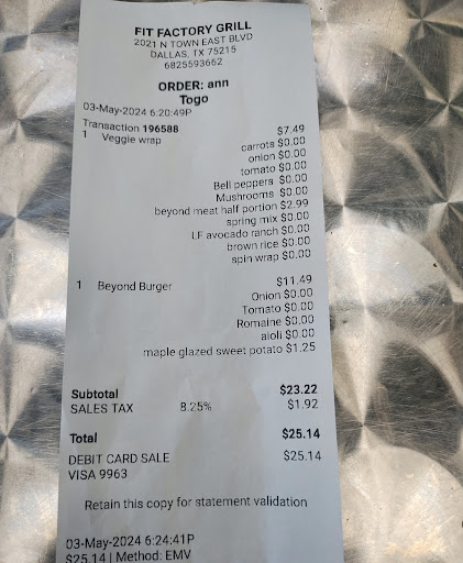 Read moreJust left the one in Mesquite for the first and last time! My husband and I walked in and was never greeted by the staff. I should have walked out but I chose to order. I ordered the veggie wrap with beyond meat. The added price on the menu for $1.99 extra for the wrap. After paying, I noticed they charged me $2.99 for the beyond meat. I asked the staff why i was charged $2.99. The first kid said that it's the way it rang up. The menu clearly states $1.99. I then ask an older man and he stated that it's because the wrap does not come with beyond meat. It's clear that it does not come with meat but extra for $1.99. He then stated his boss told him it wad $2.99 instead of $1.99 as it is on the menu! Never will I patronize that place again! I will also let others know since a couple of friends wanted to know how the food taste. They are racking up by not honoring the menu prices and inflating the price once an order is placed!...