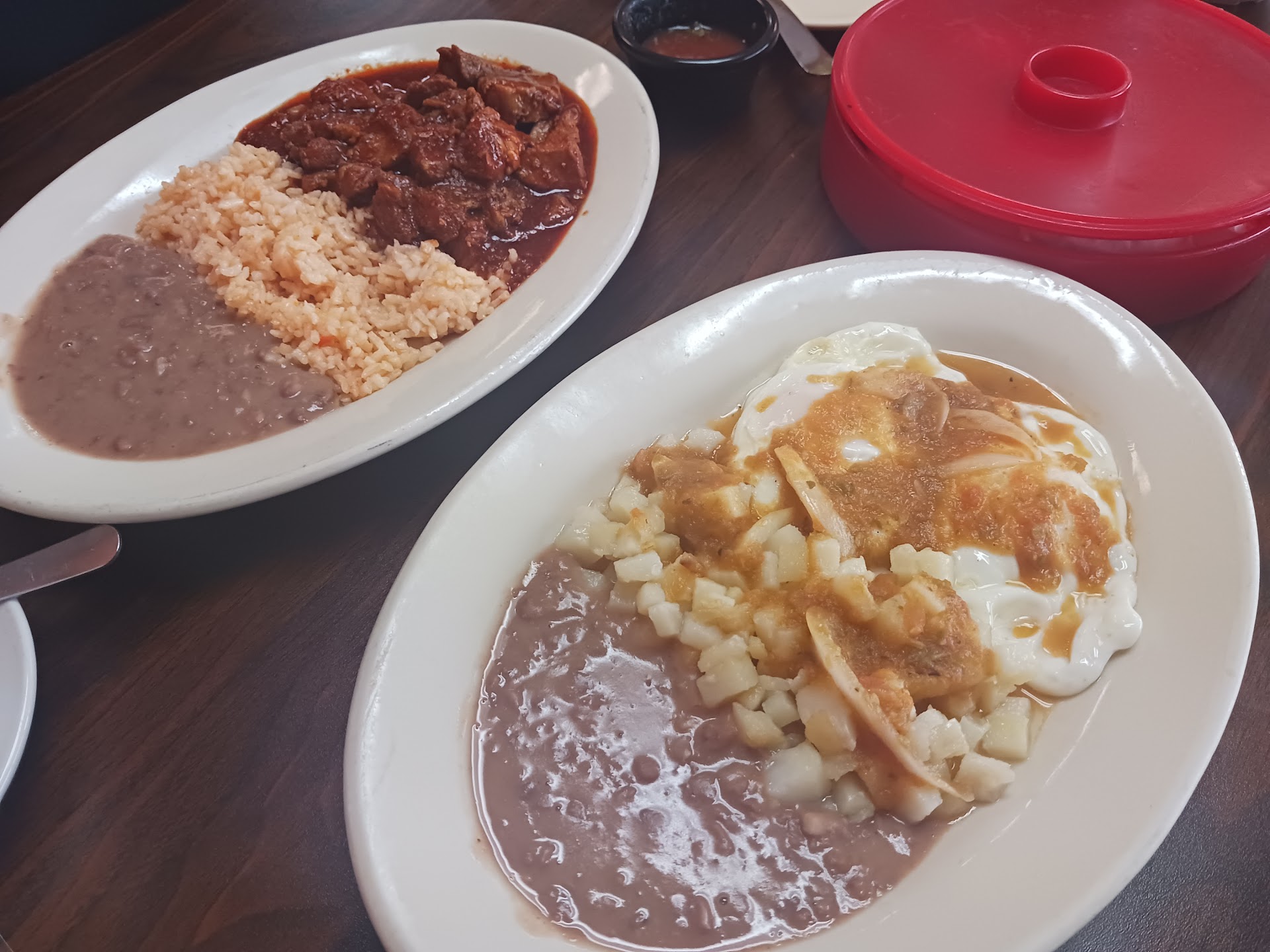 So we walked in and got our table. When the waitress finally came out she brought two little bowls of fideos, this was differnent and good. There was a menu on the wall no prices. My wife asked for 2 eggs, I asked for scrambled eggs. Beans was I supposed to be refried but it was mashed beans. Tortilla was store bought . Nothing special regular. At checkout we were trying to figure out how the bill came out to 38 dolllars. Total for each plate of food with coffee was $18. In my case I got scrambled eggs, seems the tomato or bell pepper was not too fresh, and again the side was supposedly the...