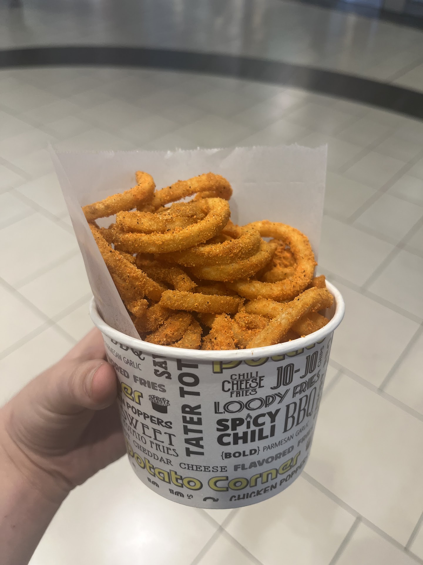 The kiosk is conveniently located on the Ground floor outside Macys, making it a great stop for a snack while shopping or before catching a movie. The aroma of their fries is irresistible, and the taste more than lives up to the hype.