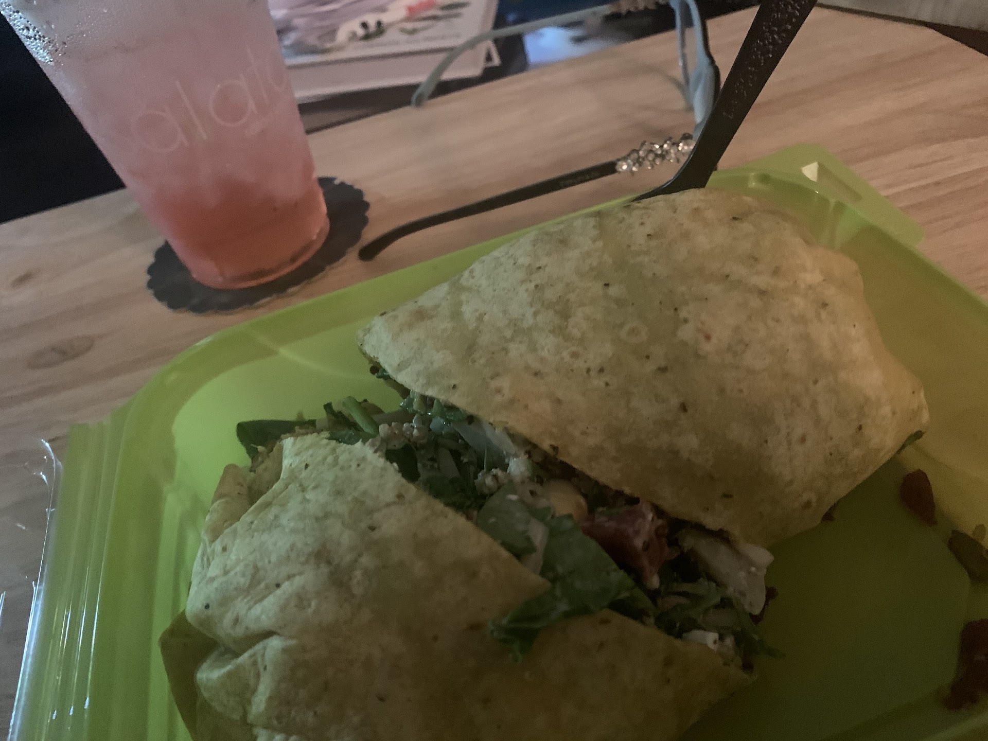 Read moreLots of ingredient options but nothing special about this place. It’s OVER priced. I paid $19 & some change after a $5 coupon for a wrap & a medium drink. So I would’ve paid approximately $25 for an $8 wrap they advertise, a medium drink & pita chips without the coupon—-still can’t figure the math with that (I did not have any “protein”). I opted not to get the pita chips —they didn’t look appetizing, at all. Moreover, their only option for a kids meal is a “bento box” which consists of six mini sauce size containers & that’s it! No tortilla that comes with it so kids can make a their own wrap or anything. As far as their tea selection, highly disappointed as a tea lover—all 3 tea selections had an astringent taste which is a huge indicator that it had been sitting there for too long—- so I had to go with their prickly pear lemonade. My BIGGEST concern is they use the same tongs to mix every meal & use the same knife to cut every wrap. For your vegan consumers &/or consumers who do not eat seafoods due to their religious beliefs (like myself)—- or perhaps those with certain food allergies —-this is a BIG no no. My daughter & I were excited to try this place for the first time & I was disappointed. Left there with nothing for my little one. It’s a no for me