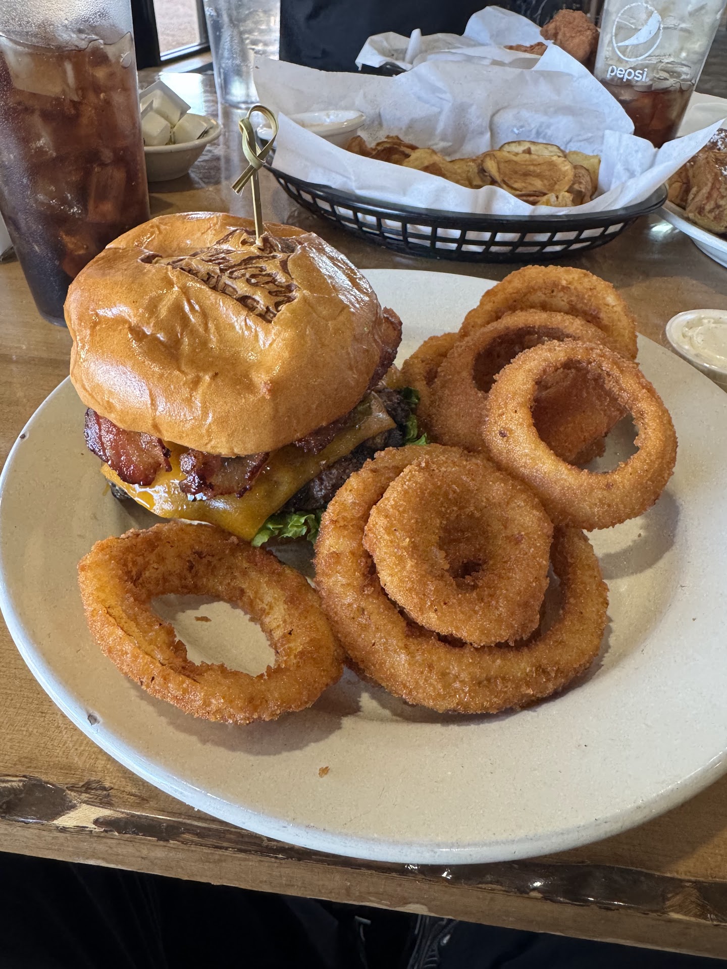 I was visiting Mesquite for the day and wanted something classy and clean for a casual lunch. The restaurant is in the Falcon Ridge Country Club and is open to the public. Service was fast and the restaurant has panoramic views throughout. Beautiful patio outside and I sat just inside, looking out over the pretty greens. The chips were served immediately and tasted so good! I tried a burger, 1/4 pound and it’s more of a junior size. If you’re hungry, get 1/2 pound. Fruit tasted fresh. Just fyi, breakfast cutoff is noon/12pm and is firm. Next time would love to try it and I’ll be mindful of the time. Would totally come back when...