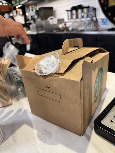 Read moreOne of the most absolutely trashy service Starbucks ever. I CALLED for a travelers size to be sure they had them available in this location to which the woman said yes. I drove there and a young lady with glasses AND NO NAME TAG, said she didn’t know how to make them and another African American coworker was kind enough to at least try while this other person stood around doing absolutely NOTHING. I still shopped around and when I came back 15 minutes easily, they still hadn’t even started prepping. Not to mention I had a MEETING AND HAD BEEN HERE FOR OVER 20 MINUTES!!!!! And then they want to give them the traveler’s box all coffee stained and with no cap and a pup cup stuck in there? What kind of trashy service is this!? NOT ONLY DID I WASTE MY TIME BUT ALSO MY PATIENCE WITH THESE 2 INDIVIDUALS. No manager on sight however. Expect a corporate call, because wasting time for someone else for your inexperience in your job isn’t our problem. Not only will I be late but also no coffee. Shame on you. Here are the photos. Regina is...
