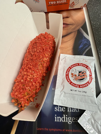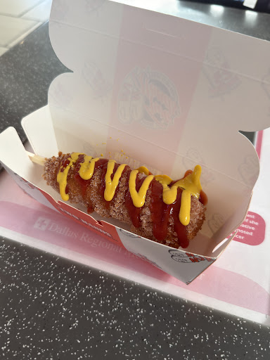 Read morethis is absolutely disgusting. Be warned when you get your corn dogs. They usually will be covered in sugar. Don’t ask me why the hell you would coat a corn dog and sugar and then secondly they put the condiments on the corn dog for you so if you don’t eat it right away, it’s just going to be disgusting and soggy. Plus they put economist on first even if that’s not what you would want on the corn dog. My classic corn dog has sugar, ketchup, and mustard. I would’ve only put mustard who the hell eat sugar on corn dogs. This is disgusting. It was so expensive though I have to force myself to eat it. But if you don’t like some sort of weird concoction like this refrain from eating here it is...