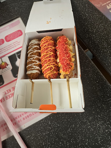 The corn dogs are always hot, fresh and super crispy, honestly way better than a regular corn dog! My favorite is the potato dog with half mozzarella/half sausage and itās perfection every time. The fries are seasoned just right and everything tastes like itās made fresh to order which I really appreciate. I also love that they offer a vegan sausage option for those who prefer it. It shows they really try to accommodate everyone!