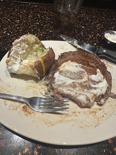 I have been coming to this place since my early 20ās. Letās just say it has been a long time. I decided to go for a steak or Prime Rib as this is the only place that is not a fancy steak house that carries it and it use to be decent. I sat at the bar and Julia T took my drink and order. I mentioned to her I have a gluten allergy (not ideal) and she was nice enough to write in every item of the order that I had Gluten Allergy. Caesar salad came first but hidden in the middle of the salad, i found croutons, the romaine lettuce was burnt and frozen. Did I get a pre made salad from the cooler, perhaps. I showed Julia the croutons and black/slimy pieces of romaine. She took the plate away and got me new silverware (highly appreciated). Outback style Prime Rib with loaded bake potato was brought by someone that seemed to be a manager. Later on I found out he was the manager (John - big guy w a beard). He just gave me the plate and started to walk away. i asked him for horseradish and he said regular horseradish or creamy? creamy was my preference. The meal was subpar and not good at all (cold, poor presentation, overcooked to where the fat look like a piece of plastic, etc).The servers there seemed miserable and they were all conglomerated by the kitchen exit. All were just cussing and being on their phones as in āi canāt wait to get out of hereā. I can understand that as the place was depressing. At the bar you had other guests complaining about the steak being overcooked. Long story short, i asked for my bill and left with a bad experience. Shoutout to Julia for the refill of come zero and giving me new silverware. At least her basic customer service skills were there. Excuse the photos as i did not want to make it evident that I was taking pictures of the bad meal. I was starving so I did eat the entire plate. The leftover salas is from the second plate which still had bad romaine lettuce. I would say, spend your money somewhere else as this seems to be the norm in customer service and mediocre food. There are plenty of options...