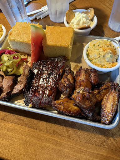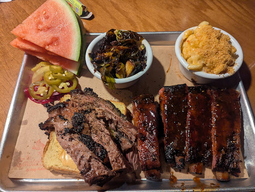 The food was excellent overall. The menu is well designed and easy to navigate. I ordered the Pit Crew platter which is 2 meats and 2 sides. The ribs (4) are nicely smoked and a good amount of meat and seasoning. Also got the brisket and you get a nice portion. Great balance of meat and fat cap. Brisket was tender and well seasoned. For me, the star were the brussel sprouts with onion jam. Perfectly cooked and seasoned. Also got the pimento Mac and cheese and whole I've seen multiple comments saying it "lacks flavor", I found it to be well seasoned and perfectly cooked. My daughter for ribs with the pimento mac and cornbread which is also a top side.