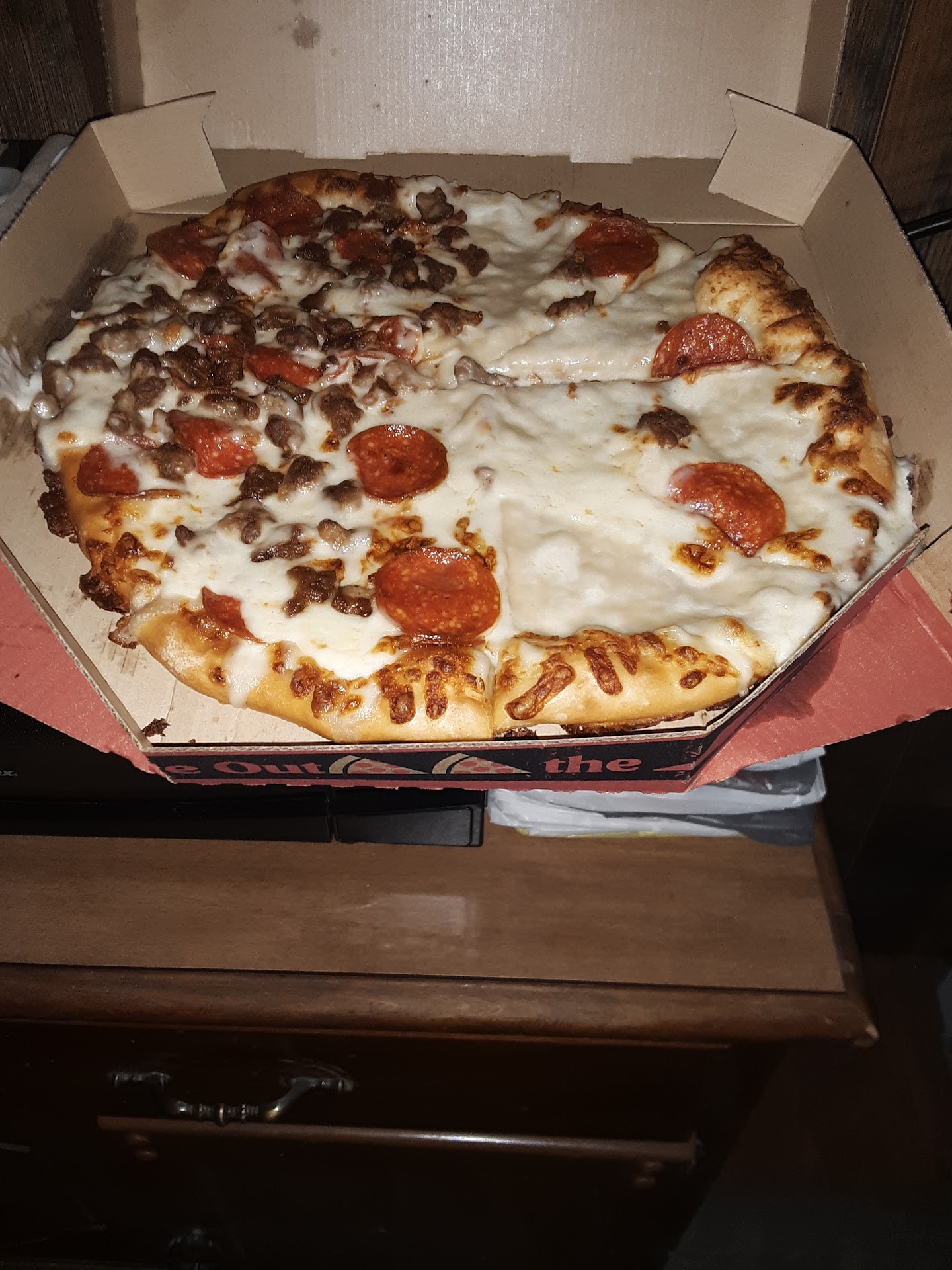 Ā Ā Ā Read moreNormally this Pizza Hut provides great service and great food and has an employee that is the assistant manager named Sarah who is simply the greatest when it comes to providing the best customer service, but last night Sarah wasn't there and my pizza was horrible. It was suppose to have two toppings spread evenly over the top, but as you can see in the photos it did not. Just a few bits were on the right side and the rest piled in a mess on the left side. I had to pull all of it off by hand and spread over the whole pizza. Luckily it was just for me and not to feed to friends. And the GM at this Pizza Hut is always rude to me and makes me feel like a child who is being scolded for asking questions. I have ordered from here over 40 times in the last six months and shouldn't be treated that way by the GM. Whenever Sarah takes my order, she always treats me like a king and tells me my business is appreciated. That is why I try to order only when she is there, but that isn't always possible. Such a shame I have spent hundreds of dollars there just to get anxiety when I call and have to interact with the GM.Othrr employees including Brian and Jess are always nice as well. Dustin, another employee is a bit inconsistent with providing good service though. I really don't know if I will ever order from there again...