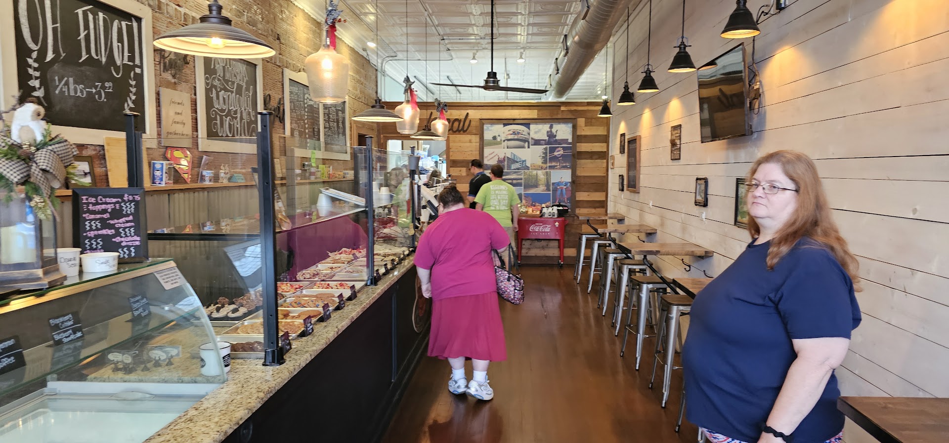 We stopped there this past week on a road trip. The individual that rang us up clearly did not want us to eat there. They mentioned multiple times that we should go somewhere else while I was trying to order food. We have a large family and were traveling with two dogs. Our options for dine in food were limited. This was the only place close to us that allowed pets. It was too hot to leave our dogs in our vehicle. The person that rang us up kept mentioning that they were not the owners and could not answer my questions/could not help us order. They have an option for a grilled cheese and soup, and when I asked if they could substitute another side instead of soup, they were unhelpful. They said they could only ring up items individually because they weren’t the owner. The prices on the menu were not listed which was frustrating. We spent over $100 for our family. The food was good, but it was not worth the hefty price tag. The meals do not come with drinks despite being almost $14. Water is not free either, even if you order food. It is a very cute shop, but it is not family friendly. It felt like my kids were an annoyance to the staff when we brought them in. I forgot to click the button for a receipt when I checked out, so when my husband went back to the register to ask for a receipt, the person that checked me out became more annoyed and said I should have asked for that earlier.