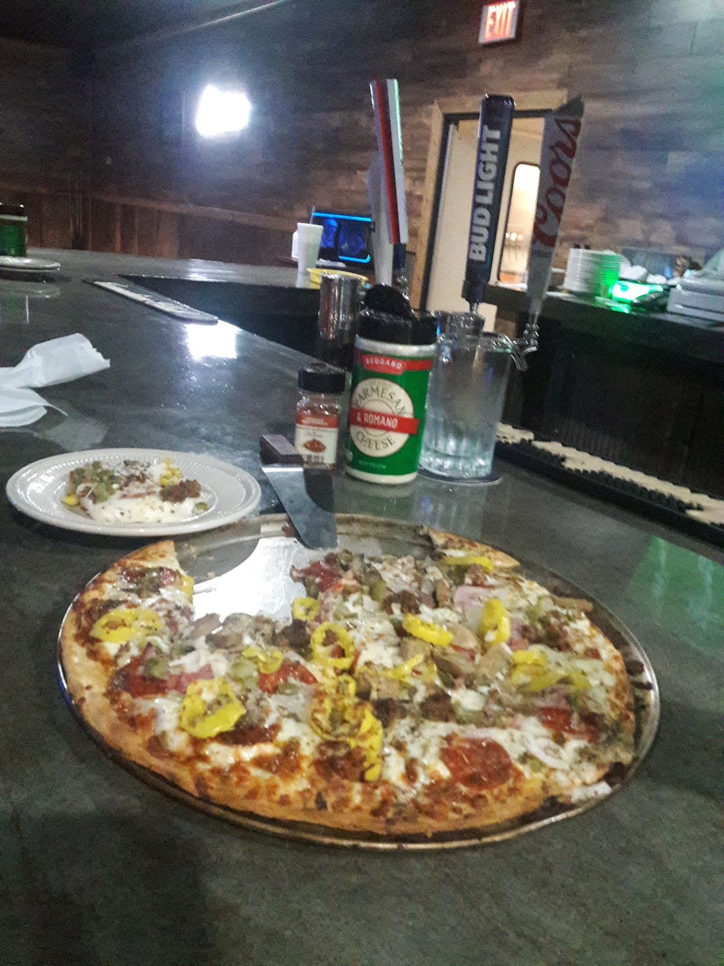 It wasn't super crowded at dinner hour on a Friday night, so the bartender (who was also waiting tables) allowed us to get our order in quickly. We ordered a pizza, based on reviews because of all the great recommendations. It was delicious! Thin crust and well-done and crispy. Not terribly greasy. It came out to us promptly, also.