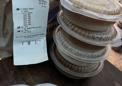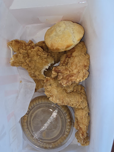 ZERO stars. Wanted Nashville hot tenders. Out of everything except popcorn chicken and regular chicken. Cashier stared at me incompetently when I asked for popcorn chicken with the Nashville hot sauce on it. Told me no they canât do that. Started to get a line behind us, and none of the other workers behind him bothered to help. I suggested that maybe they give me a small cup on the side of the Nashville hot sauce so I could dip the popcorn chicken. Cashier walked to the back to the other two employees who were just standing there watching the line build up, asked them if they could accommodate my request. They told him no. The cashier came back and just stood there and stared at us and didnât say anything until we spoke first. We ended up walking away without getting anything. Regardless of the moronic attitude and inability to fill a simple request...the bozos working in the back should have stepped up and helped their cashier as he stood there with a line of people accruing. Not to mention, there should have been an option of something as a resolution. Since they obviously werenât trained in customer service...I shouldnât...