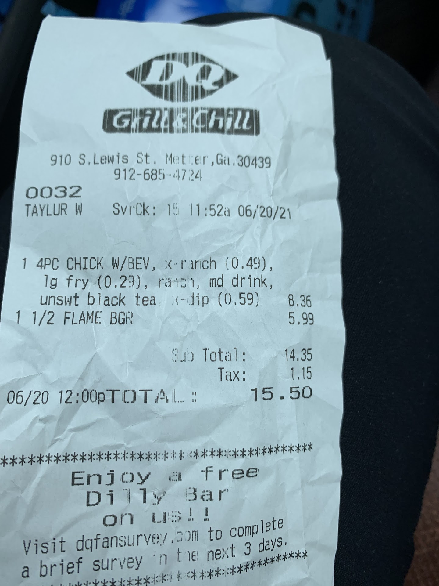 Read moreThe staff was very rude and and my vanilla shake had chunks of chocolate and heathe bar in it .. I'm just glad I'm not allergic to chocolate or things would be alot worse .. I'm not a fan of chocolate so it ruined my shake .. also they cant even count change correctly .. even when it it printed on the recite and when u tell them they want to get even more rude and explain to u that they r right .. until you tell them to read what it says on the recite .. wow don't plan on going there anytime soon .. we also waited for over 20mins just to order .. then they tell us to order .. I started and get told hold on .. another 5 to 7 mins later they say welcome to dq .. really .. and it wasn't busy at all .. I do understand problems happen and things come up but really .....
