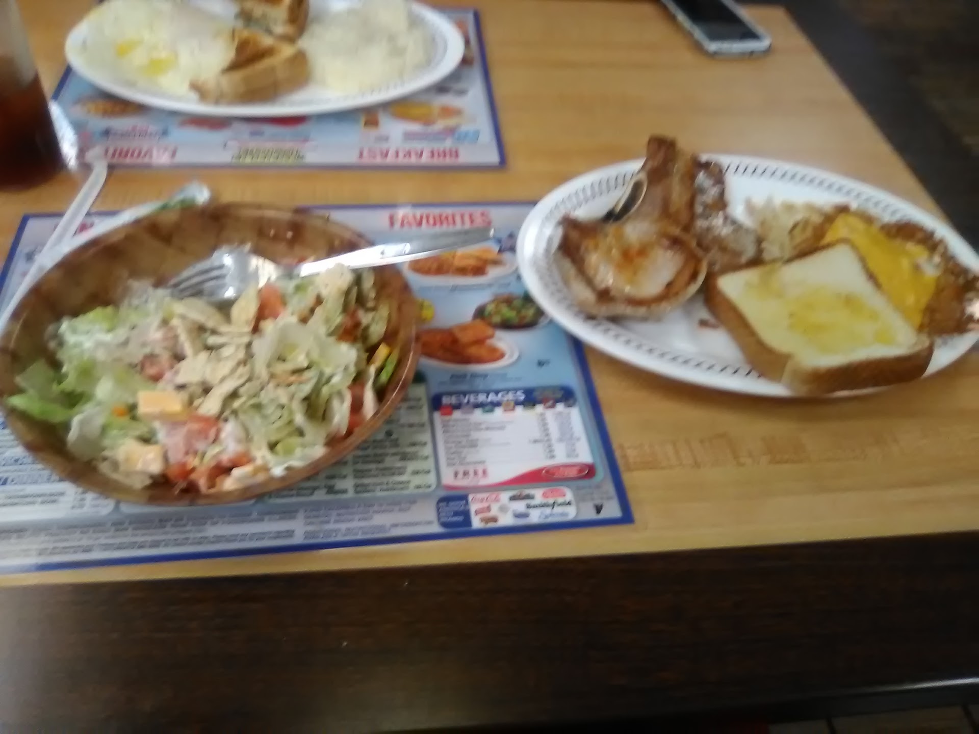 Read moreThis visit was unexpected for us not wanting another fast food experience on our trip so I suppose our expectations were somewhat high. We walked into an over crowded under staffed establishment that automatically dropped said standards to a realistic point. After waiting a short time we saw ourselves to a empty yet not cleaned booth. Within 5 minutes we were met by our server that chatted while hastily whipping the table. She then placed only the sales mat in front of us asked our drink orderes and walked away. It was at least 10 minutes before she returns no drinks in hand and the experience only went down hill from there to include misplacing out check and double charging us for items not even purchased. The food itself was sub par with undercooked pork chops and obviously expired salad. All in all we will stick with fast food from now on because at least we get what we...