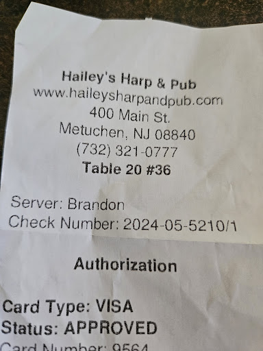 Read moreThe owner was extremely rude to my friend and I. My friend is Chinese and here on business. I'm from out of state, but was in NJ for unrelated matters. We found Hailey's Harp & Pub on the internet and decided to give it a try for the one night we would both be in Edison, NJ. We walked in, I gave the owner my driver's license, but friend only had his Chinese ID card. The owner became upset as soon as my friend handed him the card, and as my friend tried to say "Look, you can see my birthday there," he was cut off mid-sentence and we were asked to leave. The owner told us to "get out" and "don't be rude to the owner." Rude? For showing a foreign ID card in a bar? We weren't even pushy about it.