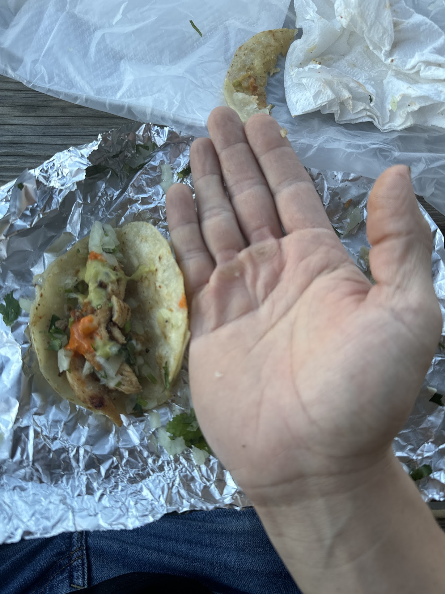 They serve some DELICIOUS tacos out of this little trailer. We tried them for the first time today and will be back soon. We had 3 tacos de pollo and 2 tacos de Pastor. They came with a roasted Jalapeno Pepper that was sweet and not spicy at all, though that was likely a fluke. They give you 2 containers of excellent hit sauces. The (green) Salsa Verde was great and moderately spicy. The (red) Salsa Roja was tasty but had a sneaky, creeping heat that was so spicy I started hiccuping! We had the tacos on Corn Tortillas and will do the same from now on as they were perfectly cooked...
