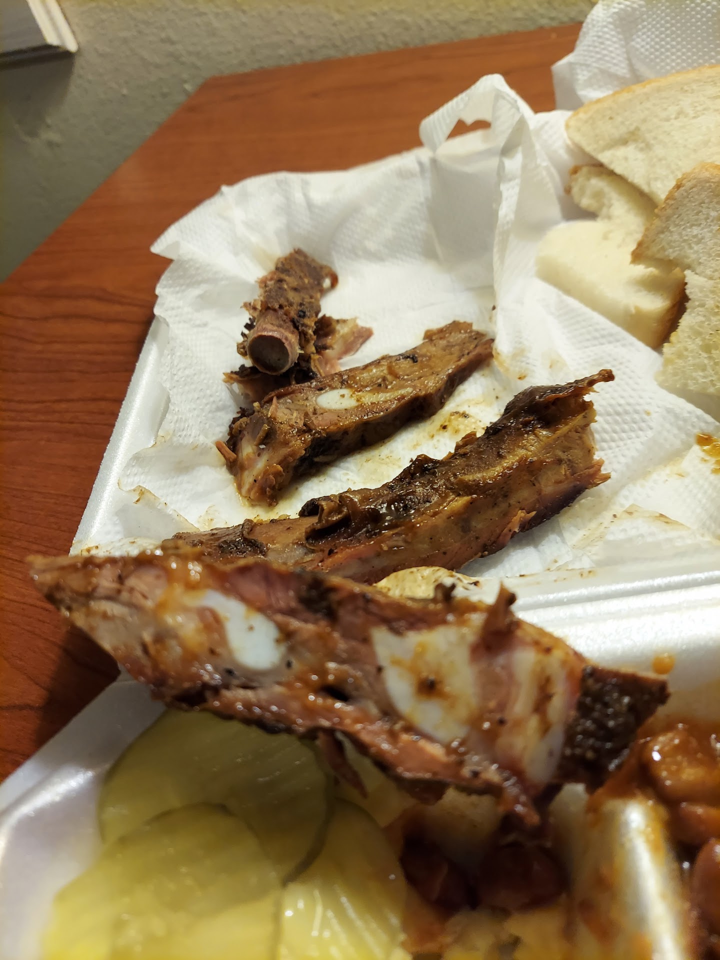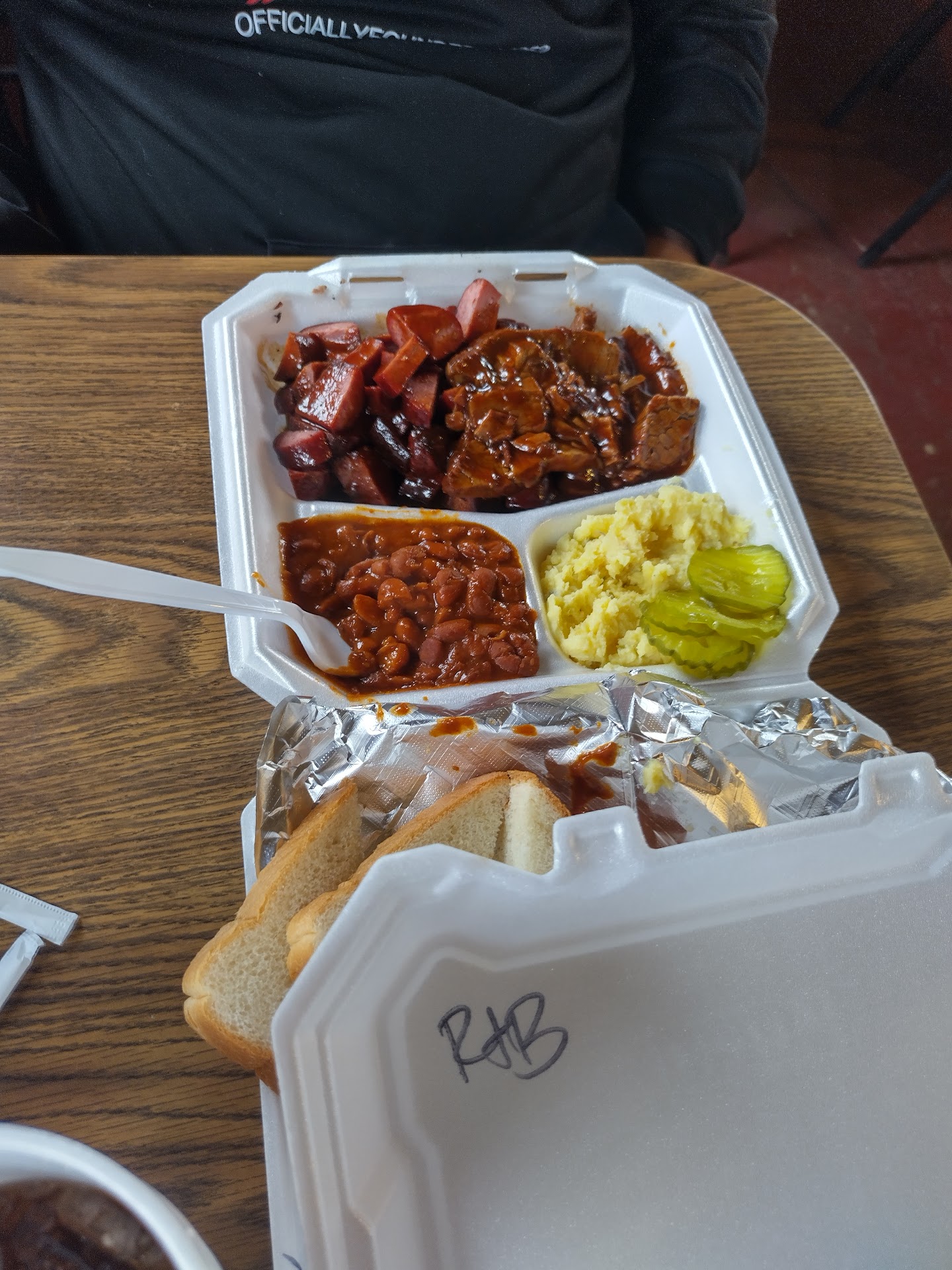 I was in Mexia Texas on business and happened to mentioned that I was hungry and had been looking for some meat on the grill. The lady suggested Wright's BBQ. I went in and was greeted when I walked in. The place was clean and neat WITH NO FLIES. Three (3) people ahead of me. The menu had too may choices for me. I told the young lady that I knew that I didn't want any sausages, (I have to watch my pork intake). I decided on the ribs and brisket. Collard greens and HOMEMADE potato salad. I paid for my order and stepped aside so the customer behind me could order. He was a regular and got the peach cobbler. I went back ordered the Peach Cobbler. I should have gotten at least 2. But I didn't sample it before I left the restaurant Mexia Texas. But I do plan to return. I'm actually thinking about calling to see if I can get a WHOLE COBBLER. The cobbler, had me rocking from side to side and humming. I said all of that to say this, Wright's BBQ, in my opinion, is worth the 50 miles I traveled from Palestine for business, to just to taste the peach cobbler. The meats were good. The ribs were not dried out. The beef brisket, yes was good. If I get the chance to return, I hope to remember to ask for my brisket with some FAT on it... One more thing, in my opinion, the meats were seasoned so good that I didn't need OR use...