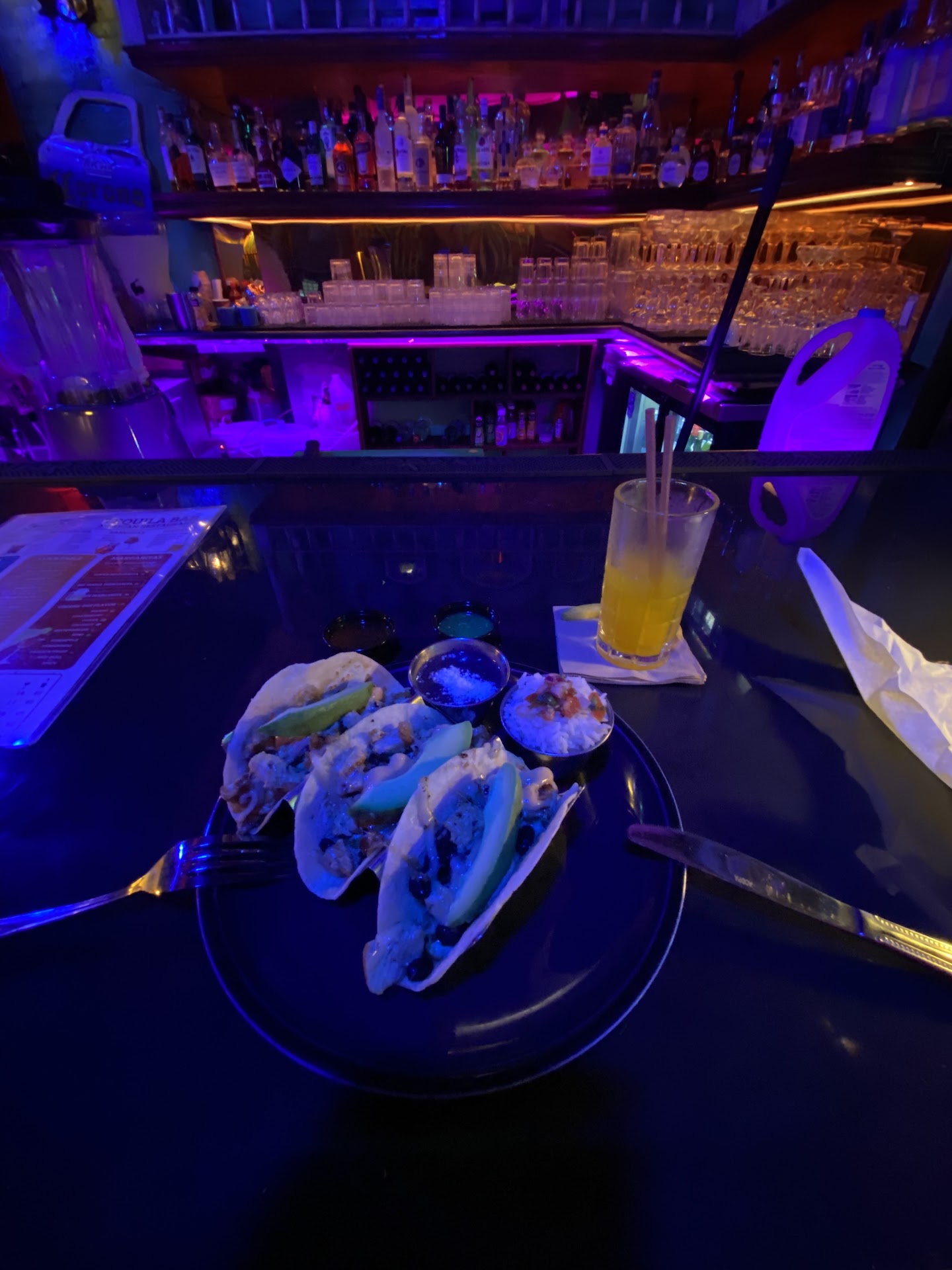 The food was absolutely delicious! The tacos were packed with flavor—fresh ingredients, perfectly seasoned, and just the right amount of spice. We also tried a couple of cocktails, and they were super refreshing (and strong in a good way!). But the real showstopper? The dessert. It was out of this world—sweet, creamy, and the perfect ending to the meal.