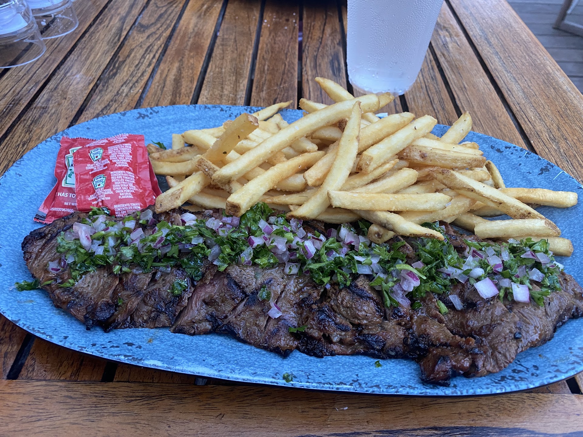 Read moreThe place looked nice. By the beach but you can’t see the ocean once you’re inside. We ordered a beer, non alcoholic strawberry daiquiri, blackened grouper sandwich and skirt steak. The drinks cost more than other restaurants in the area and came in plastic containers. The non alcoholic daiquiri arrived loaded with alcohol. Good thing my wife was not allergic to alcohol and only turns bright red when consuming it. The fish sandwich was very soggy which made the buns soft and soggy and the blackened fish loose it’s crunch. with juices from the coleslaw pouring down with each bite. Very disappointing. The only highlight of the meal was the French fries with the outer layer extremely crunchy and the inside soft and tender. The skirt steak with the chimichurie sauce on the other hand was outstanding The steak was perfectly grilled and tasted so good. If it’s your first time in Miami Beach please be careful with the bill. Restaurants tucked in gmservice fee of 20%. We asked about this and found out the 50% of this extra fee goes to your server and thee other 50% goes to the rest of the staff. Basically the gratuity is...
