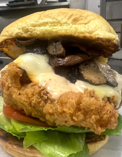 The star of the menu? The PJ Mushroom Fried Chicken Sandwich—an absolute game-changer. It starts with a beautifully fried, golden-brown chicken breast that’s crispy on the outside and unbelievably tender on the inside. But what takes it to the next level is the combination of melted provolone, rich onion jam, and perfectly sautéed mushrooms. The cheese adds a creamy, slightly sharp bite, the onion jam brings a touch of sweetness, and the mushrooms add an earthy depth that balances everything out. Each bite is a perfect harmony of textures and flavors.