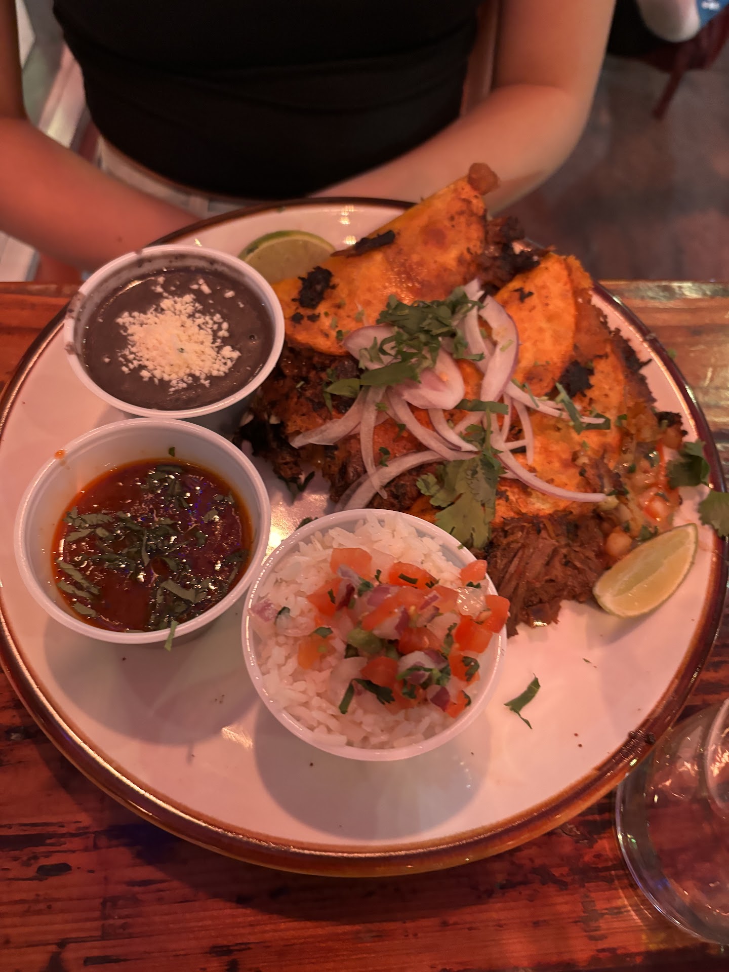 Food was very tasty I had the 3 meat burrito and my bf had the 3 meat quesadillas (both were $30). You have to ask for any sauce (red or green) on the side which isn’t a big deal but just to note. 9/10