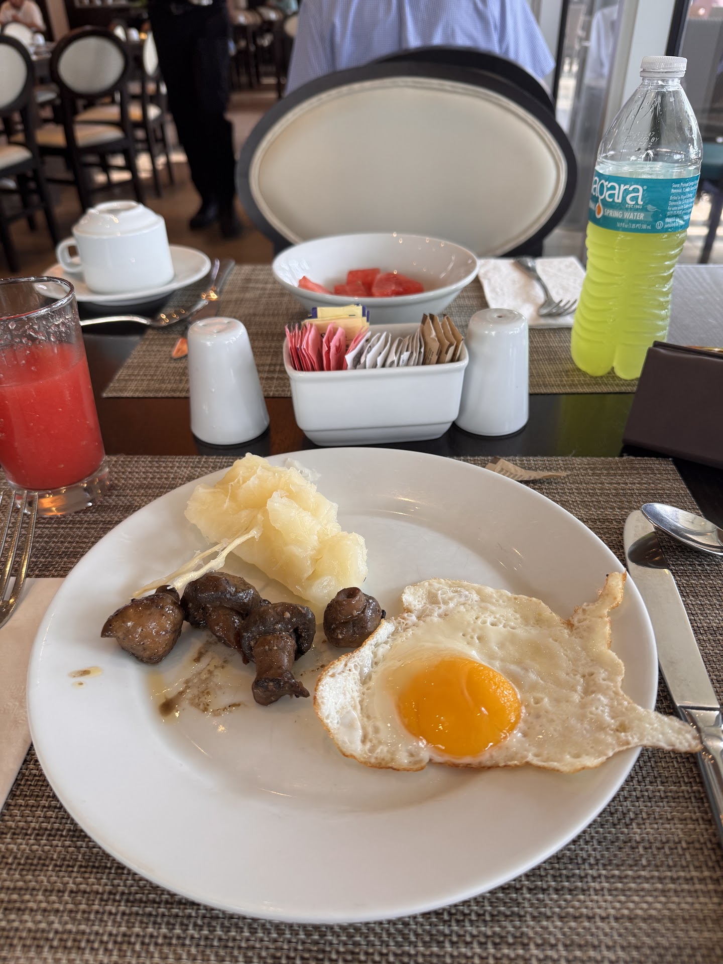I have seen much more creative breakfast buffets, but this one was certainly above average! They have signs everywhere not to refill your water bottles from the water at the breakfast area, but I donât see why not. Unless theyâre concerned about contamination. It feels like theyâre just trying to sell water...