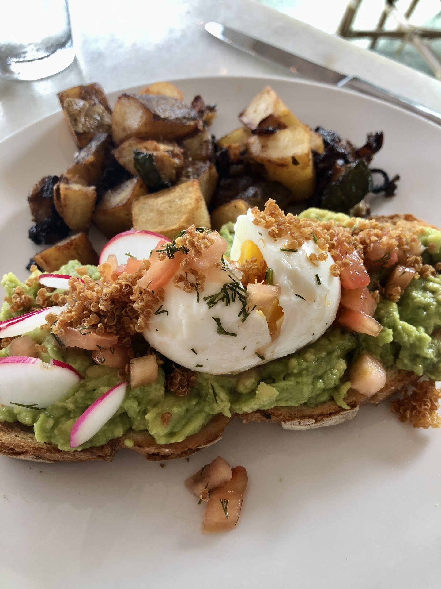 My husband had the avocado toast which was good but not excellent. The tomato relish remains the standout on that dish. It wouldâve been better if the egg had a little bit more softness to it. Perhaps try one step below soft-boiled.