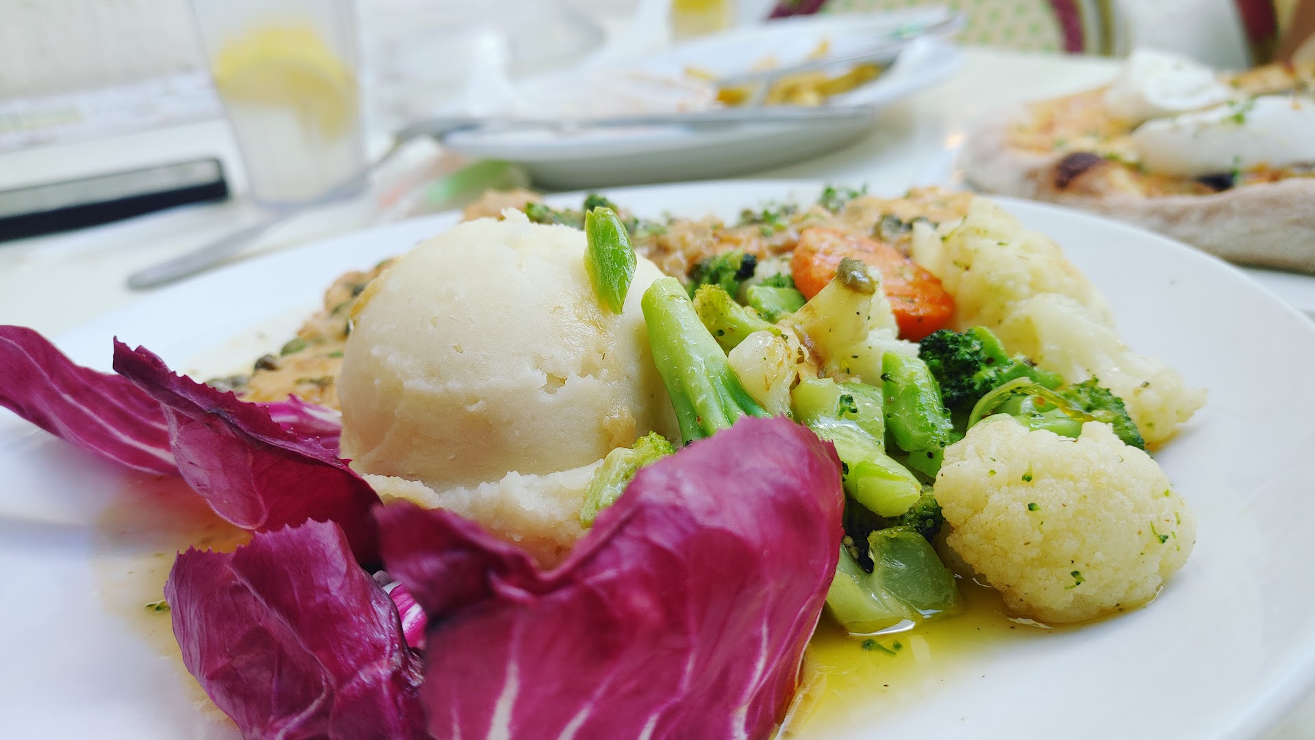 A restaurant named after a dessert cannot afford to fail on it. Well, in this offering, you get a cannoli trio (the small ones, cannolo are the big ones) plated with coffee gelato, strawberries and a chocolate drizzle. NOTE: If you're allergic to nuts, sliced almonds are a garnish but easily left off.