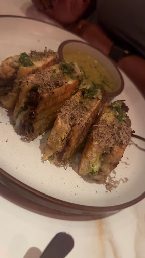The caviar service comes as a tartare with tuna, a bunch of toppings/sauces and ROTI! The south beach snapper reminded me of a yellowtail crudo 10/10- wouldn't skip it. The wagyu griot had some of the best rice and peas I've ever had out (restaurants undercook this rice often IMO) and the griot was SO tender, there's a chance that was the best griot I've ever had- outside of a trip to Haiti. The crab claws were good, obviously a smaller portion. The oxtail cubano sandwich is a little cheesy, has a hint of spice (great twist since cubanos have none) and comes with a little sauce. I had to fight to finish my last few bites of food but still did not skip dessert.. we aren't quitters. We only tried the gelato (all 4 flavors) and while I liked them all, I can confidently say to go right to that pistachio flavors without hesitation. That's the WINNER!