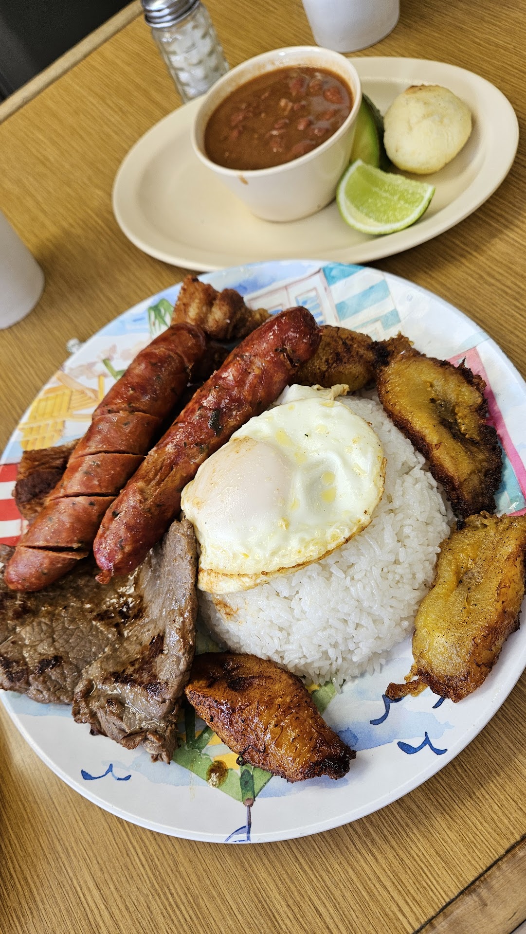 Service was fast, and the food was excellent. I had a bandera paisa plate which had a few types of meat, rice, beans, plantains and a nice fresh piece of avocado. My wife had an egg plate with a corn type of bread and cheese.