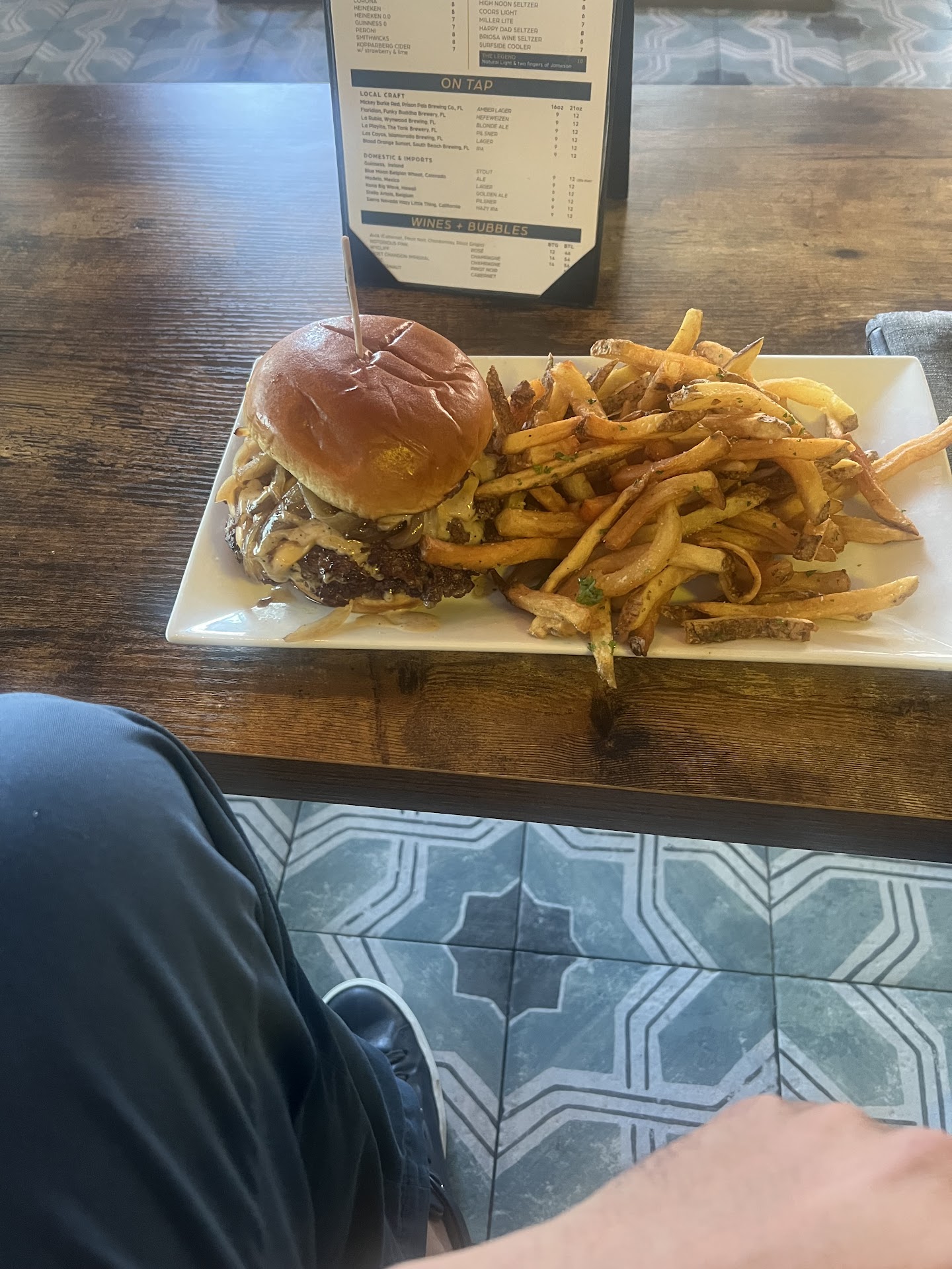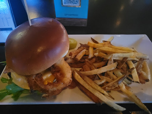 The food was ok (chicken sliders with a little heat and a side of fries). The atmosphere was very lively, with rival fans cheering big plays. High fives were had, and taunts were made.