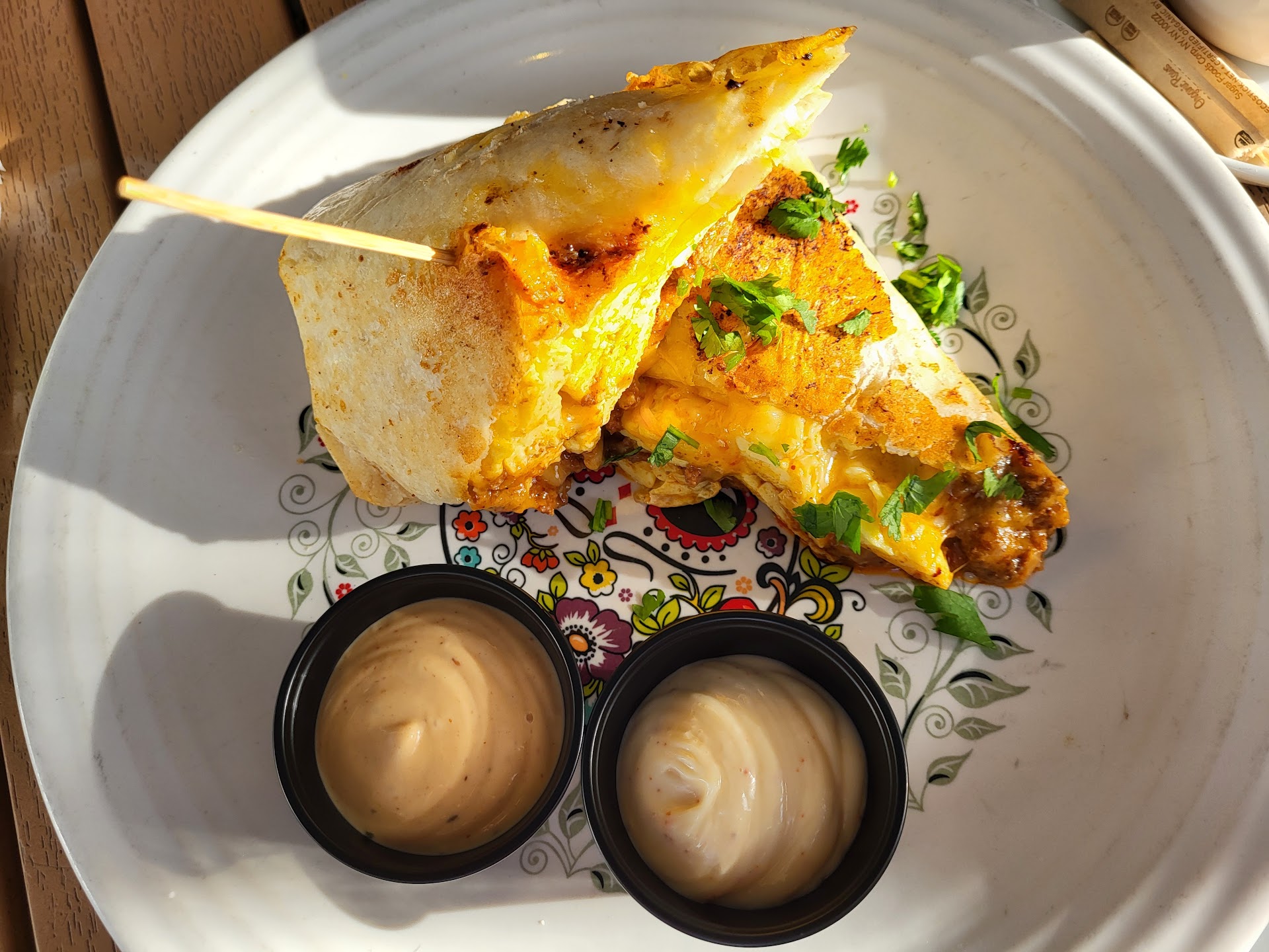 Now, to the food and drinks. So, we came during happy hour and their options did not disappoint. We had the mango habanero wings, the steak tacos, and chips and dips. Starting with the chips and dips, the guac was super fresh and rivaled the guac we had in Mexico. The queso had just the right amount of spice and was hot! The wings?! The wings! Just the right amount of crispiness. The mango habanero was on the mild side (my preference as I don’t like spicy) and was bursting with flavor. Seriously. Also, although the menu says Jumbo Wings (which i’m not a fan of - I don’t want to eat a bunch of steroided chicken), the wings were the perfect size. I ended up ordering a second order of them because they were that good. I can’t say enough about the steak tacos. We added garlic cayenne sauce on top, and although it was spicy, it was just the right blend of flavors. The tacos were the best Ive had in quite some time.