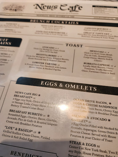 The menu is an impressive mix of classic American breakfast and lunch dishes with a Miami twist. Whether you're craving a hearty omelet to start your day or something light like a fresh salad, News Cafe has you covered. Their seafood offerings, in particular, are fantastic â fresh, flavorful, and expertly prepared. For those who enjoy a bit of indulgence, their famous News Cafe French Toast is a must-try!