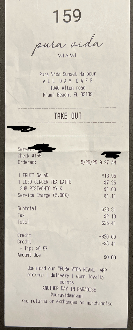 WOW. I never feel compelled to write bad reviews about places I visit but my last visit to Pura Vida left a horrible taste in my mouth (quite literally). I am a Miami Beach native and have been coming to Pura Vida for many years. Over the past few years or so, I have noticed a steady decline in the quality of their food and overall service- as well as a steep increase in their prices.