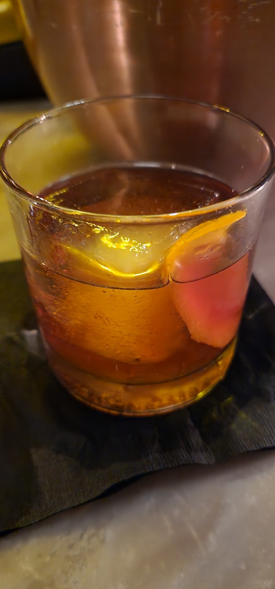 Read moreI hate to say I didn't have a great experience here. It was very likely because they just recently reopened after having been closed for C19 precautions. It may have been that they had to hire new staff, who did not have a lot of experience. The atmosphere is great, that's obvious from the pictures. The staff were super friendly and accommodating. The staff also seem to have a good knowledge of their liquor inventory. However it seemed the mixology skills were that of a beginner, or a person in training. For example, we ordered an old fashioned, a boozey cocktail staple, that came out watery, put together with typical restaurant ice, and tasted like it was made with store-bought premixed old-fashioned cocktail starter. Also, maybe I'm splitting hairs at this point but, I asked for a two-finger pour of blended Scotch whiskey, Monkey Shoulder, got less than I asked for, but was...