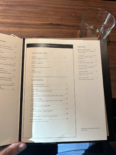 Tips.. Can skip the hearth tastings (though roasted oysters were refreshingly good). The menuâs first few pages with nigiri and sashimi can also be a pass; theyâre pricey and donât deliver much. Stick to the cool and hot tastings, veggies, and maybe the omakase if youâre feeling fancy (theyâve got a 10-course one, plus a customizable somakase)