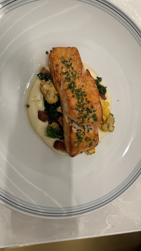 Read moreI came twice. I must say all the waiters and waitresses are really nice and friendly. First time I had a Winter Kale Salad which is make with But squash, quinoa, tosted almonds, pome granate seeds,whole grain citrus dressing and I added grilled salmon. First the brought me the salad with chicken when all my friends had their food. Then I had the right one and I started to eat it but it was totally bland…. I ask to the waiter and he said the dressing is in the bottom. I mixed and still the same. I realized didn’t come with dressing. He brought a cup with dressing. The kale was full of big stains (in the kitchen didn’t prepare it. From 5 I can rated it as a 0.5. Next day I ordered as an appetizer a tomate soup and it was good and as a entree GRILLED FAROE ISLAND SALMON* cauliflower puree, baby kale, bacon spicy honey & orange glaze. The cauliflower was cream…?a really small portion with just literally two small chunks of cauliflower. The salmon taste was “ok” nothing special. As a dessert we share a BANANA STICKY TOFFEE PUDDING banana cake, toffee sauce, vanilla ice cream which was good but they didn’t warm it. One day the cappuccino was good and on the 2nd...